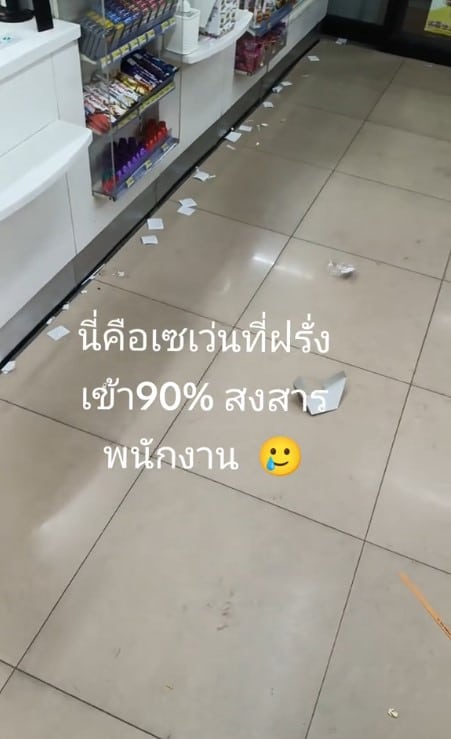 คลิปเผยสภาพในร้านเซเว่น สาขาที่ฝรั่งหรือนักท่องเที่ยวต่างชาติเข้าเยอะ ใบเสร็จเต็มเกลื่อนร้าน ทำชาวเน็ตเสียงแตกเป็นสองฝั่ง