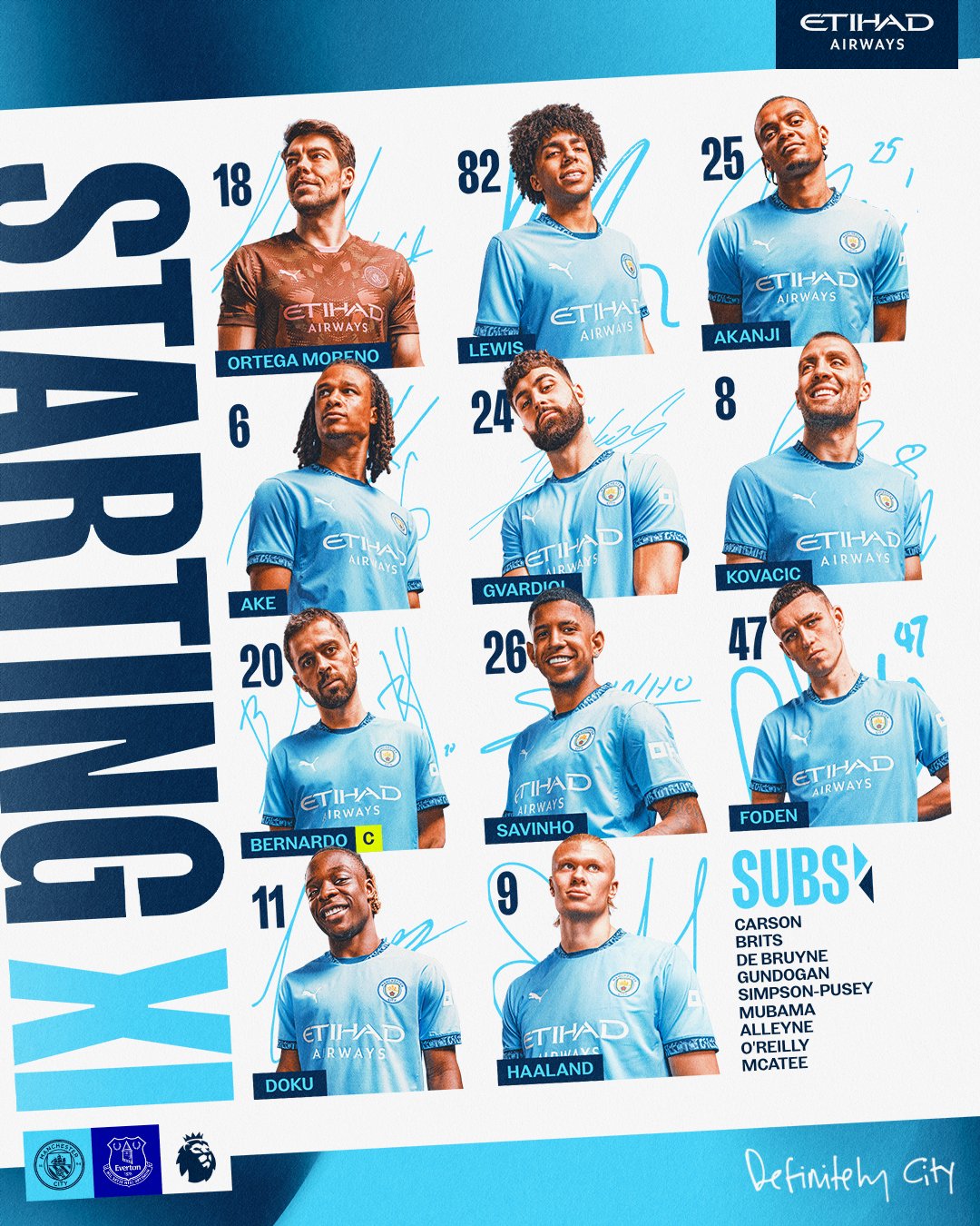 11 ตัวจริง แมนซิตี้ พบ เอฟเวอร์ตัน แข่ง 19.30 น. ฟุตบอลพรีเมียร์ลีก (ลิงก์ดูบอลสด)