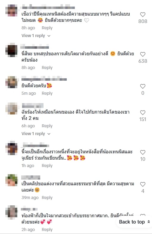 ด้านแฟนคลับของทั้งคู่ที่ได้เห็นคลิปนาที จูเนียร์ คุกเข่าขอ น้องเทนนิส ฮีโร่เหรียญทองโอลิมปิก แต่งงาน ต่างก็เข้ามาแสดงความยินดีกันอย่างมากมาย ทุกคนที่เฝ้าดูการเดินทางของทั้งสองต่างก็ชื่นชมการมีกันและกันตลอดระยะเวลา 9 ปี แฟนคลับบางคนถึงกับร้องไห้ออกมาด้วยความดีใจกับชีวิตที่ประสบความสำเร็จอีกขั้นหนึ่งของ จูเนียร์ รามณรงค์ และเทนนิส พาณิภัค