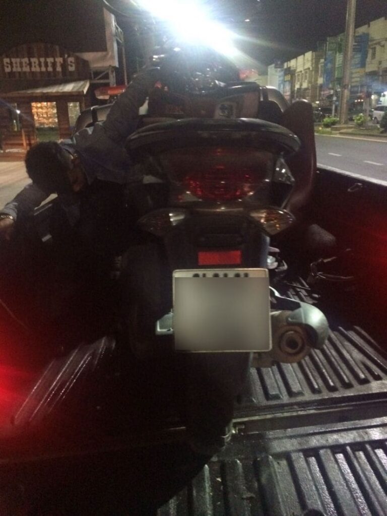 ที่เกิดเหตุ เป็นบริเวณทางตรง จุดกลับรถ มีช่องทางเดินรถ 2 ช่องทาง พบรถยนต์บรรทุก 6 ล้อ ทะเบียน 70-7255 นนทบุรี มีนายสนทยา สุชะคะ อายุ 36 ปี อยู่ที่ 129 ม.7 ต.คลองชะอุ่น. อ.พนม จ.สุราษฎร์ธานีเป็นผู้ขับขี่ จอดเลี้ยวกลัวหัวรถอยู่กล่างถนน และที่ใต้ท้องรถคันดังกล่าว พบรถจักรยานยนต์ ยี่ห้อฮอนด้า พีชีเอ็ก สีแดง ทะเบียน ขมย-746 ภูเก็ต สภาพด้านหน้าพังยับเยิน