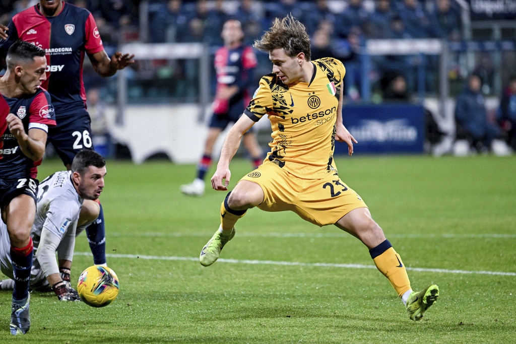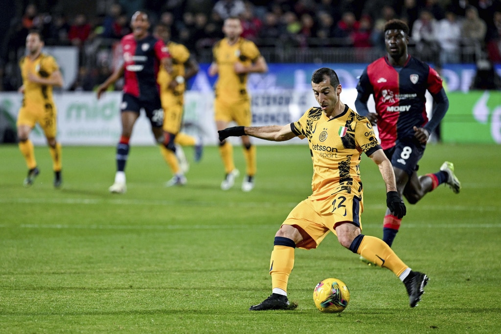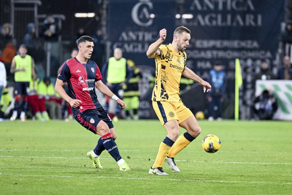Inter Milan’s Nicolò Barella challenges for the ball during the Serie A soccer match between Cagliari Calcio and Inter Milan at the Unipol Domus stadium in Cagliari, Italy, Saturday, Dec. 28, 2024. (Gianluca Zuddas/LaPresse via AP)Cagliari’s Roberto Piccoli, centre, challenges for the ball during the Serie A soccer match between Cagliari Calcio and Inter Milan at the Unipol Domus stadium in Cagliari, Italy, Saturday, Dec. 28, 2024. (Gianluca Zuddas/LaPresse via AP)Inter Milan’s Stefan de Vrij, right, challenges for the ball during the Serie A soccer match between Cagliari Calcio and Inter Milan at the Unipol Domus stadium in Cagliari, Italy, Saturday, Dec. 28, 2024. (Gianluca Zuddas/LaPresse via AP)Inter Milan’s Roberto Piccoli celebrates after scoring his side’s third goal during the Serie A soccer match between Cagliari Calcio and Inter Milan at the Unipol Domus stadium in Cagliari, Italy, Saturday, Dec. 28, 2024. (Gianluca Zuddas/LaPresse via AP)Inter Milan’s Alessandro Bastoni celebrates after scoring the opening goal during the Serie A soccer match between Cagliari Calcio and Inter Milan at the Unipol Domus stadium in Cagliari, Italy, Saturday, Dec. 28, 2024. (Gianluca Zuddas/LaPresse via AP)Inter Milan’s team players celebrate after Alessandro Bastoni scored the opening goal during the Serie A soccer match between Cagliari Calcio and Inter Milan at the Unipol Domus stadium in Cagliari, Italy, Saturday, Dec. 28, 2024. (Gianluca Zuddas/LaPresse via AP)Inter Milan’s Henrikh Mkhitaryan passes the ball during the Serie A soccer match between Cagliari Calcio and Inter Milan at the Unipol Domus stadium in Cagliari, Italy, Saturday, Dec. 28, 2024. (Gianluca Zuddas/LaPresse via AP)Inter Milan’s Nicolo Barella controls the ball during the Serie A soccer match between Cagliari Calcio and Inter Milan at the Unipol Domus stadium in Cagliari, Italy, Saturday, Dec. 28, 2024. (Gianluca Zuddas/LaPresse via AP)