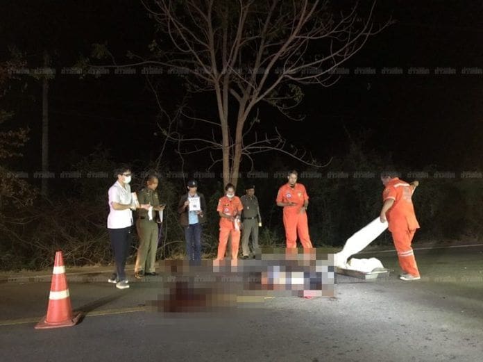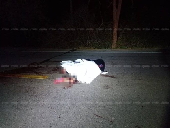 สยองเมืองกาญจน์ เก๋งขยี้หนุ่ม 21 ร่างเละ ขาขาดกลางถนน ก่อนขึ้นรถตู้หลบหนี