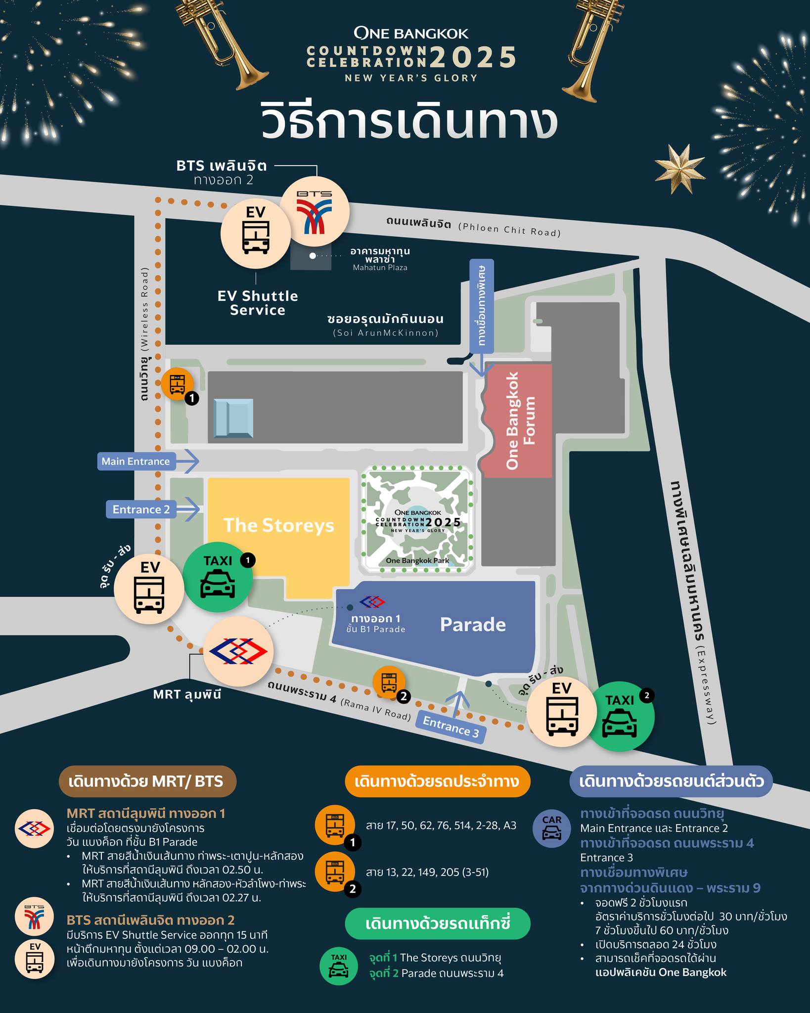 วิธีเดินทาง ร่วมงานเคานต์ดาวน์ One Bangkok 2025