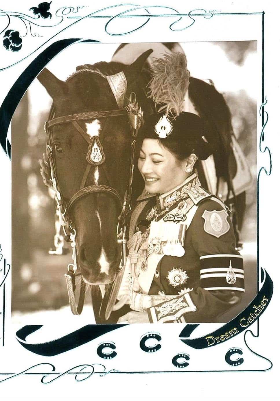 ภาพพระราชทาน ทรงฉลองพระองค์ราชองครักษ์ทหารม้ารักษาพระองค์ ฉายพระรูปคู่กับม้าทรงประจำพระองค์ “Dream Catcher” ม้าทรงกีฬา ประเภทศิลปะบังคับม้า เพศเมีย”