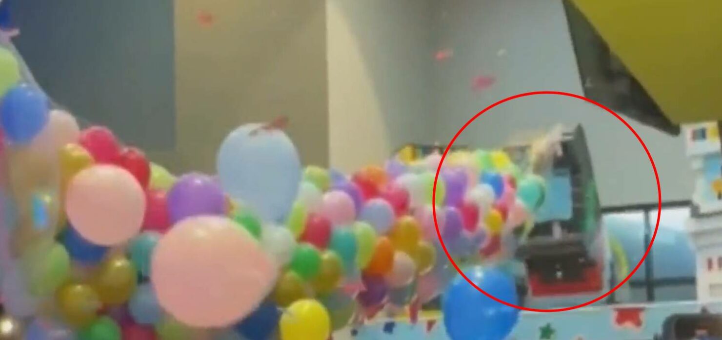 อ้างอิงจากเจ้าหน้าที่ดับเพลิงระบุว่า พนักงานร้านเกมปล่อยลูกโป่งจากตาข่าย ทว่าปล่อยไม่ได้ ทำให้พนักงานคนหนึ่งออกแรงดึงมากเป็นพิเศษและเกี่ยวเข้ากับตัวต่อเลโก้ที่มีรูปทรงเป็นตู้เกมและมีความสูง 2.5 เมตร ตกลงมาจากความสูงประมาณ 3.6 เมตรใส่ประชาชนเป็นเหตุให้ผู้ใหญ่บาดเจ็บ 4 ราย เด็กบาดเจ็ล 6 ราย เคราะห์ดีทั้งหมดบาดเจ็บเล็กน้อย มีรอยถูกบาดและรอยถลอก
