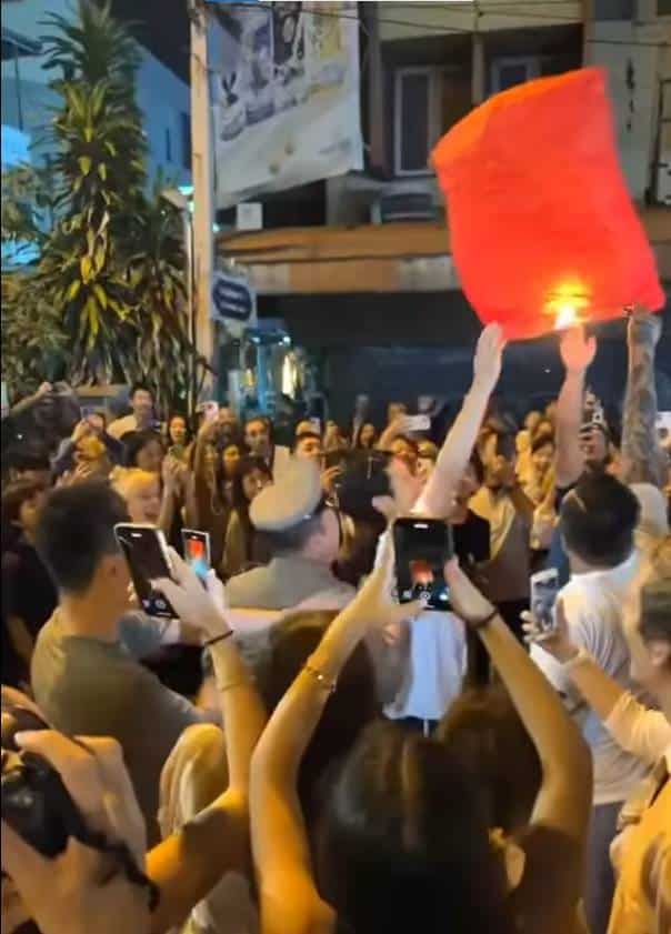 จากภาพนั้นแสดงให้เห็น ถึงนักท่องเที่ยวพยายามปล่อยโคมลอย แต่ทางเจ้าหน้าที่ตำรวจดึงโคมลงมา ก่อนที่นักท่องเที่ยวคนดังกล่าวจะถอดแว่นดำและเผชิญหน้ากับเจ้าหน้าที่ตำรวจ กระชากคอเสื้อและตะคอกใส่เจ้าหน้าที่ โดยมีหญิงคนหนึ่งพยายามเข้ามาห้าม นอกจากนี้ในคลิปยังมีข้อความภาษาอังกฤษที่แปลเป็นไทยด้วยว่า “หมอนี่จะเริ่มปี 2025 ในคุก” ตามที่มีรายงานไปก่อนหน้านี้นั้น