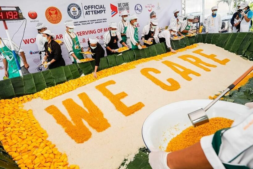 เวลา 19.00 น. วันที่ 20 ม.ค. 62 พล.อ.ประวิตร วงษ์สุวรรณ รองนายกรัฐมนตรี และรัฐมนตรีว่าการกระทรวงกลาโหม รับมอบประกาศนียบัตรจาก Guinness World Records เจ้าของสถิติการทำ “ข้าวเหนียวมะม่วงที่ใหญ่ที่สุดในโลก” พร้อมเปิดโครงการ We Care About You เพื่อส่งเสริมการท่องเที่ยวไทย และเสริมสร้างความสัมพันธ์ไทยจีนและแสดงความห่วงใยให้กับนักท่องเที่ยวชาวจีน รวมถึงส่งเสริมอาหารไทยให้เป็นที่รู้จัก