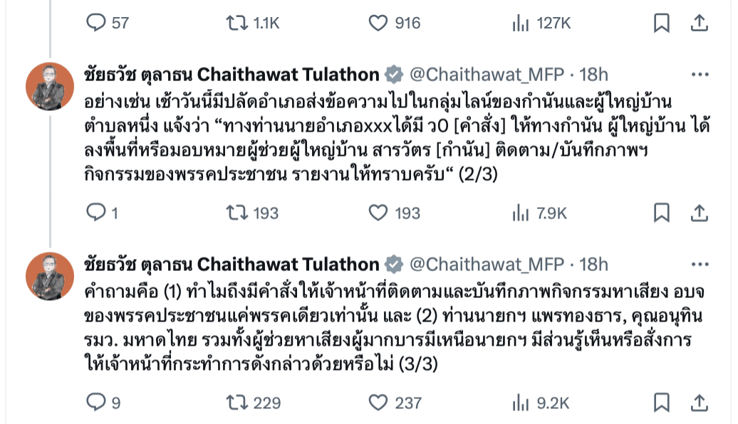 คืบหน้าข่าวเดือดการเมือง หลัง นายชัยธวัช ตุลาธน อดีตหัวหน้าพรรคก้าวไกล ฐานะผู้ช่วยหาเสียงพรรคประชาชน แฉข้อความผ่าน X ว่า 2 วันนี้เริ่มงานปีใหม่ด้วยการมาช่วยหาเสียงให้ทีม อบจ เชียงใหม่ – ลำพูนของพรรคประชาชน การเลือกตั้ง อบจ คราวนี้นอกจากจะผิดปกติที่จัดเลือกตั้งวันเสาร์ ทำให้หลายคนติดงานไม่สะดวกไปใช้สิทธิ์แล้ว ยังน่ากังวลว่าอาจจะมีการใช้อำนาจรัฐเอื้อประโยชน์ให้แก่ผู้สมัครบางคนหรือบางพรรคด้วย
