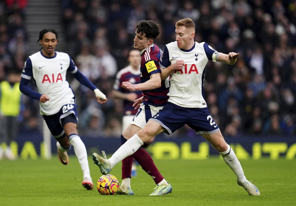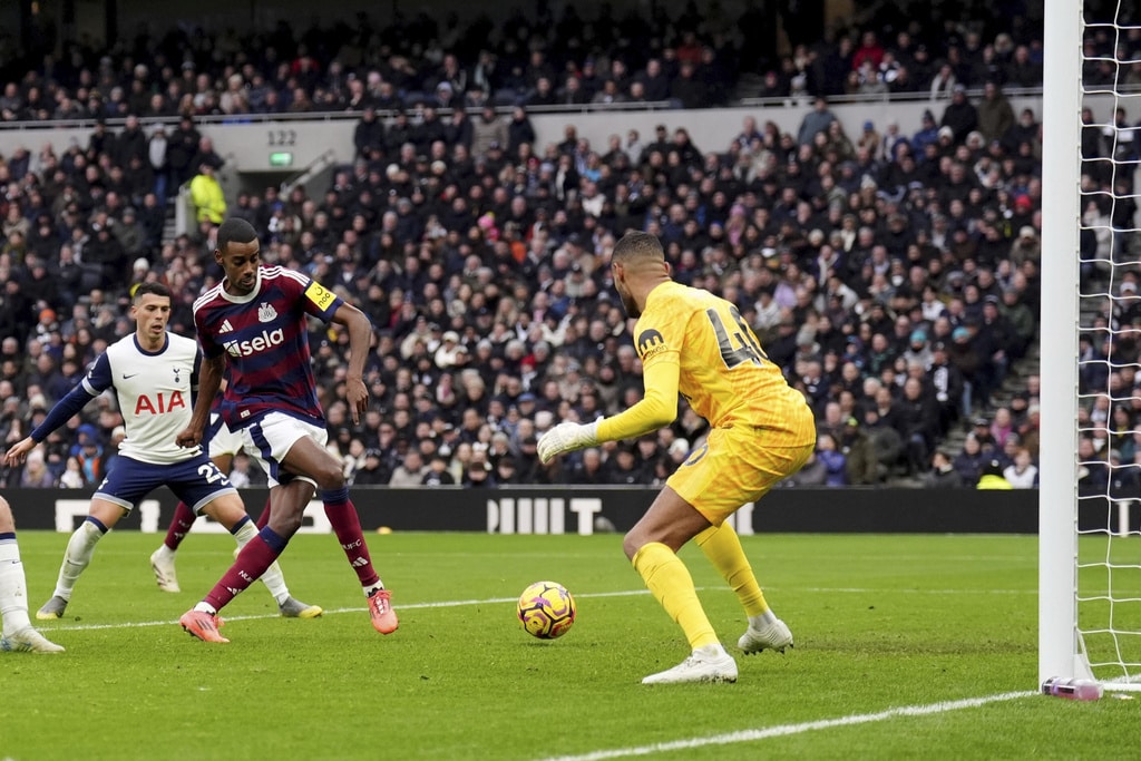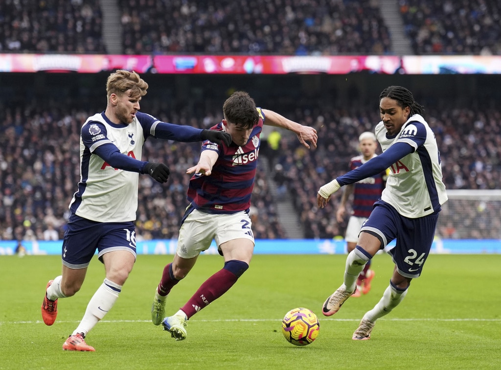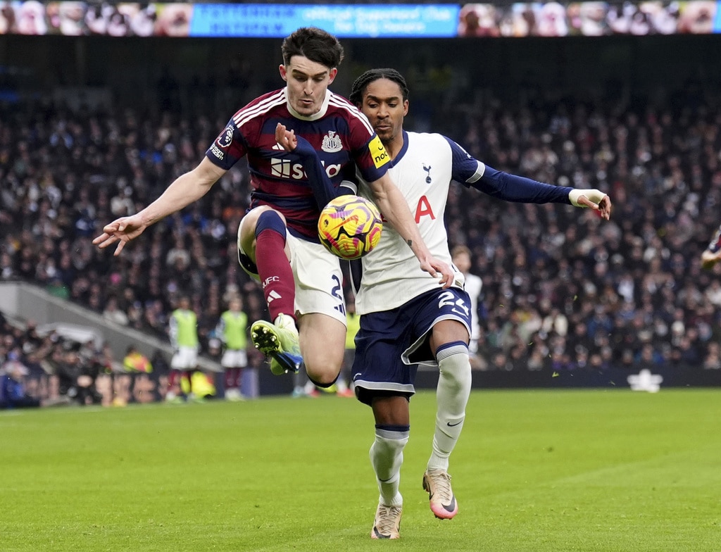 Newcastle United’s Tino Livramento and Tottenham Hotspur’s Dejan Kulusevski, right, battle for the ball during the English Premier League soccer match between Tottenham Hotspur and Newcastle United at the Tottenham Hotspur Stadium, London, Saturday Jan. 4, 2025. (John Walton/PA via AP)Newcastle United’s Alexander Isak score past Tottenham’s Brandon Austin during the English Premier League soccer match between Tottenham Hotspur and Newcastle United at the Tottenham Hotspur Stadium, London, Saturday Jan. 4, 2025. (John Walton/PA via AP)Tottenham Hotspur goalkeeper Brandon Austin catches the ball from a corner during the English Premier League soccer match between Tottenham Hotspur and Newcastle United at the Tottenham Hotspur Stadium, London, Saturday Jan. 4, 2025. (John Walton/PA via AP)Newcastle United’s Tino Livramento battles for the ball with Tottenham Hotspur’s Timo Werner, left, and Djed Spence during the English Premier League soccer match between Tottenham Hotspur and Newcastle United at the Tottenham Hotspur Stadium, London, Saturday Jan. 4, 2025. (John Walton/PA via AP)Newcastle United’s Tino Livramento, left, and Tottenham Hotspur’s Djed Spence battle for the ball during the English Premier League soccer match between Tottenham Hotspur and Newcastle United at the Tottenham Hotspur Stadium, London, Saturday Jan. 4, 2025. (John Walton/PA via AP)