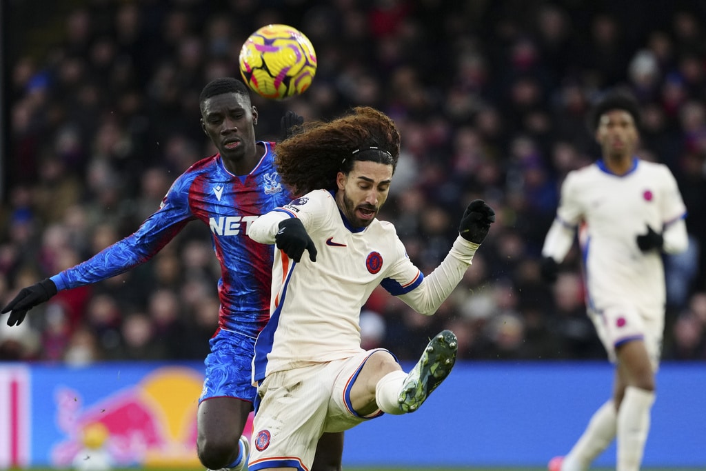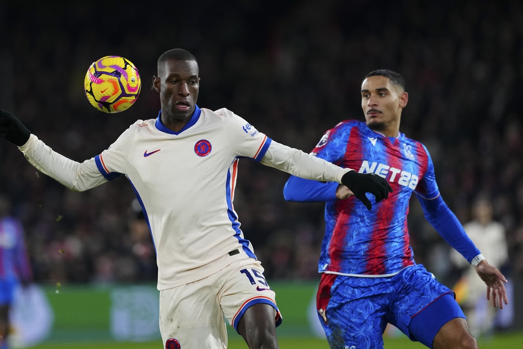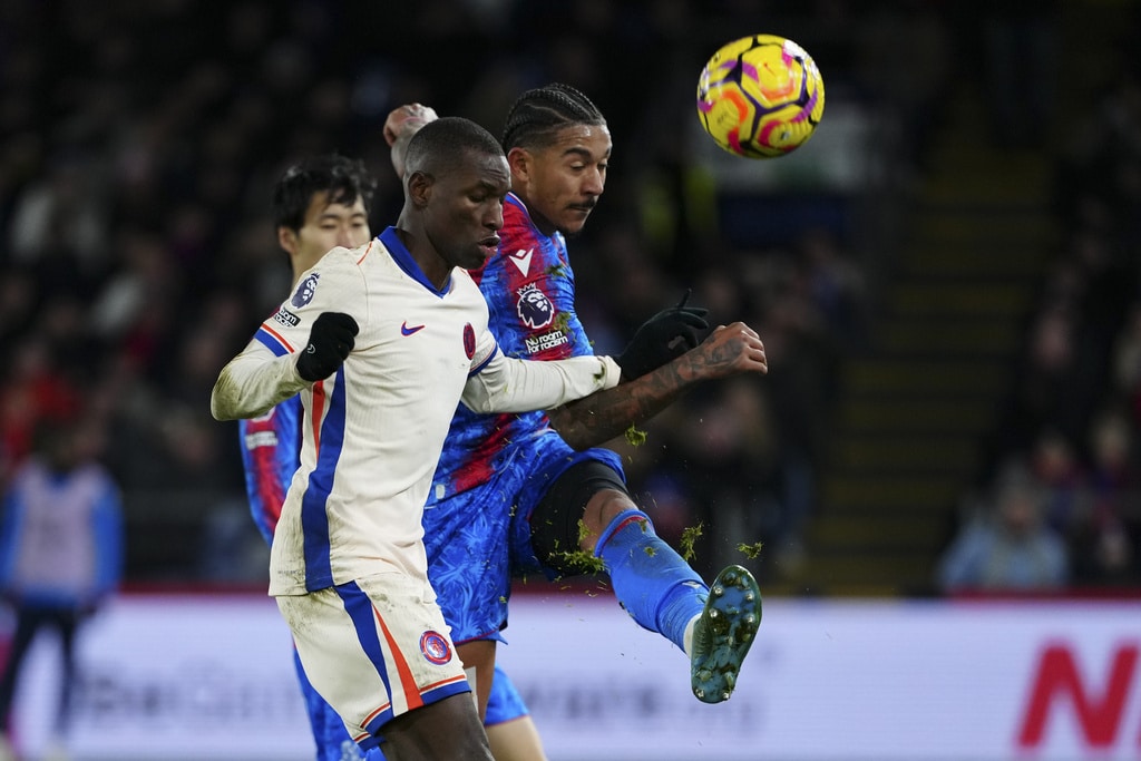 Chelsea’s Marc Cucurella passes the ball in front of Crystal Palace’s Ismaila Sarr during the English Premier League soccer match between Crystal Palace and Chelsea in London, Saturday, Jan. 4, 2025. (AP Photo/Dave Shopland)Chelsea’s Pedro Neto is tackled during the English Premier League soccer match between Crystal Palace and Chelsea in London, Saturday, Jan. 4, 2025. (AP Photo/Dave Shopland)Chelsea’s Cole Palmer reatcs during the English Premier League soccer match between Crystal Palace and Chelsea in London, Saturday, Jan. 4, 2025. (AP Photo/Dave Shopland)Crystal Palace’s Chris Richards kicks the ball by Chelsea’s Nicolas Jackson during the English Premier League soccer match between Crystal Palace and Chelsea in London, Saturday, Jan. 4, 2025. (AP Photo/Dave Shopland)Chelsea’s Nicolas Jackson controls the ball in front of Crystal Palace’s Maxence Lacroix during the English Premier League soccer match between Crystal Palace and Chelsea in London, Saturday, Jan. 4, 2025. (AP Photo/Dave Shopland)Chelsea’s Enzo Fernandez holds Crystal Palace’s Jean-Philippe Mateta during a corner kick during the English Premier League soccer match between Crystal Palace and Chelsea in London, Saturday, Jan. 4, 2025. (AP Photo/Dave Shopland)