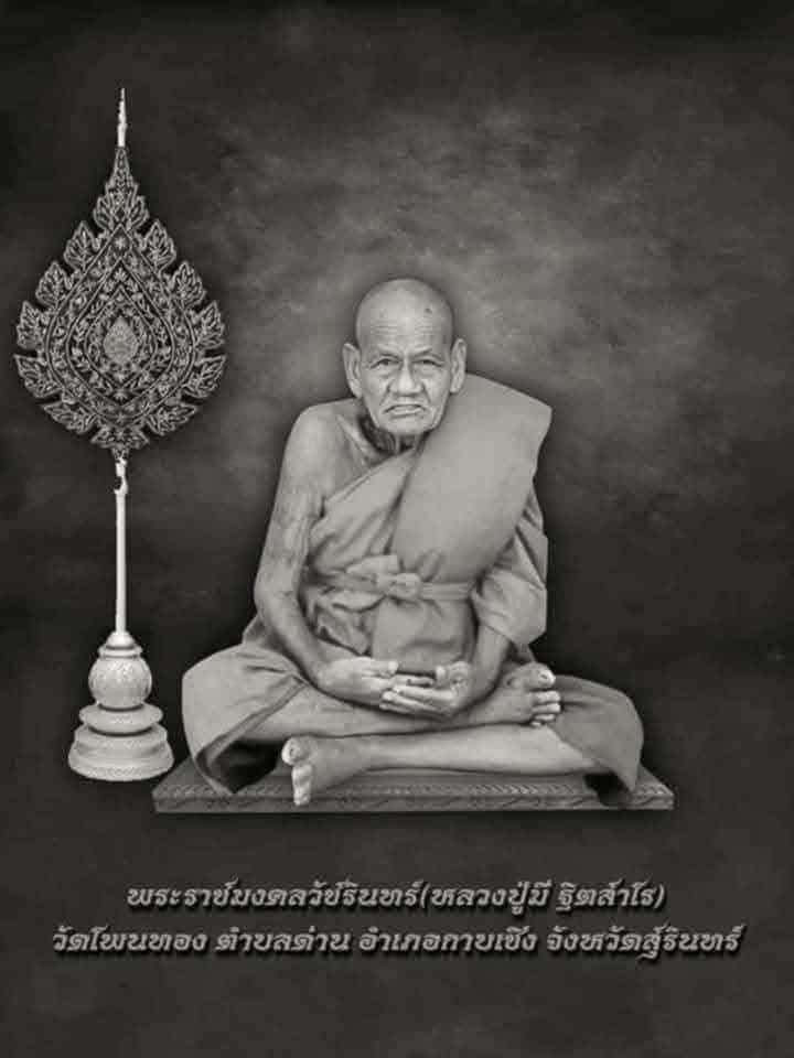 อ้างอิงจาก : FB พระปิดตาพญาบังบด หลวงปู่มี ฐิตสาโล วัดโพนทอง อายุ ๑๐๗ ปี จ.สุรินทร์, ชุมชนคนสุรินทร์, สำนักงานพระพุทธศาสนาจังหวัดสุรินทร์