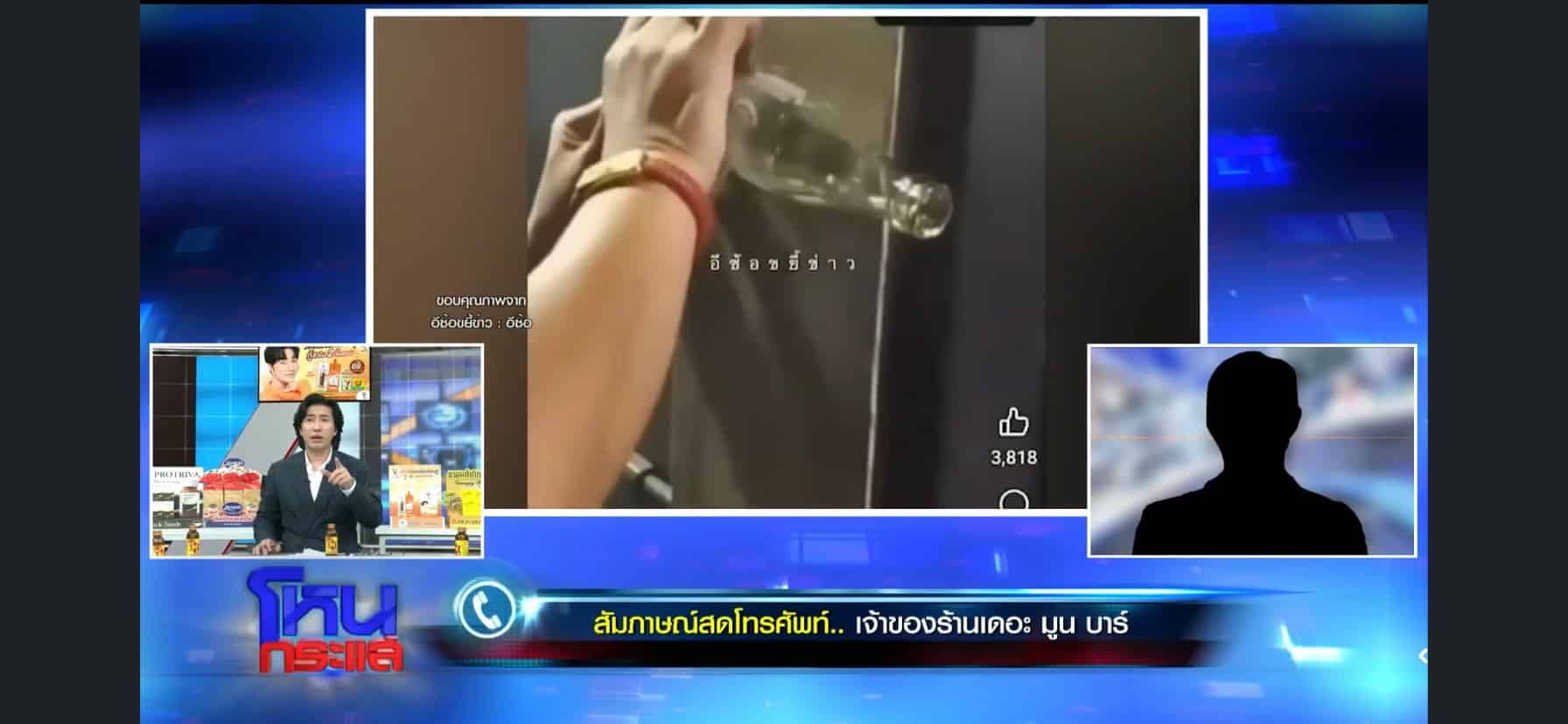ต่อมาทางรายการได้ติดต่อโฟนอินไปยัง คุณต่อ เจ้าของร้าน The moon bar (เดอะมูนบาร์) เพื่อให้ตอบทุกประเด็นดราม่าที่เกิดขึ้น โดยทางเจ้าของร้านยืนยันว่า “ภายในร้านไม่มีเรื่องของยาเสพติดตามที่เป็นข่าวแน่นอน รวมถึงคลิปที่มีคนกำลังใช้ขวดบดสารเสพติดอยู่นั้นก็ไม่ใช่ที่ร้านของตน เป็นข้อมูลเท็จทั้งสิ้น เพราะเจ้าหน้าที่ตำรวจ และฝ่ายปกครองจะเข้ามาปิดล้อมร้านและตรวจปัสสาวะ รวมถึงยาเสพติดอยู่ตลอดอยู่แล้ว ซึ่งก็ไม่พบเรื่องแบบนี้ และทางร้านเองก็ไม่เห็นด้วยในเรื่องยาเสพติดด้วย”