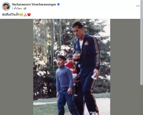 เมื่อเวลาประมาณ 08.00 น. วันเสาร์ ที่ 11 มกราคม 2568 ท่านอ้น วัชเรศร วิวัชรวงศ์ ได้โพสต์ภาพเนื่องในวันเด็กแห่งชาติ ผ่านทางเฟซบุ๊กส่วนตัว เผยให้เห็นภาพของ ท่านอ้น เมื่อครั้งยังเป็นเด็ก ถ่ายคู่กับ พระบาทสมเด็จพระเจ้าอยู่หัว ท่านพ่อ พร้อมระบุแคปชั่น “สุขสันต์วันเด็ก”