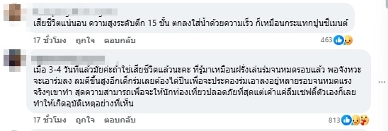 อีกคอมเมนต์หนึ่งคาดว่าน่าจะเป็นผู้ที่อยู่ในเหตุการณ์ดังกล่าว เข้ามาเผยสาเหตุที่แท้จริงก่อนจะร่างของเด็กโหนร่มจะตกลงมาเสียชีวิต ระบุว่า “เมื่อ 3-4 วันที่แล้วมั้ยคะ ถ้าใช่ เสียชีวิตแล้วนะคะ ที่รู้มาเหมือนฝรั่งเล่นร่มจนหมดรอบแล้ว พอจังหวะจะเอาร่มลง ลมตีขึ้นสูงอีกเด็กร่มเลยต้องไต่ปีนเพื่อจะประคองร่มเอาลงอยู่หลายรอบจนหมดแรง จริง ๆ เขาทำสุดความสามารถ เพื่อจะให้นักท่องเที่ยวปลอดภัยที่สุด แต่เค้าแค่ลืมเซฟตี้ตัวเองก็เลยทำให้เกิดอุบัติเหตุอย่างที่เห็น”
