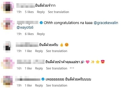 สาวเกรซ โพสต์ภาพแห่งความสุขครั้งนี้ พร้อมระบุแคปชั่นประกอบว่า “วันเด็กปีนี้..เรามีต้าวเด็กเป็นของตัวเองแล้วนะ” งานนี้ก็มีเหล่าเพื่อนพ้องในวงการบันเทิง, การเมือง และแพทย์ต่างก็เข้ามาคอมเมนต์ร่วมแสดงความยินดีกับคุณพ่อคุณแม่มือใหม่และทายาทคนแรกของเขาทั้งคู่ด้วย