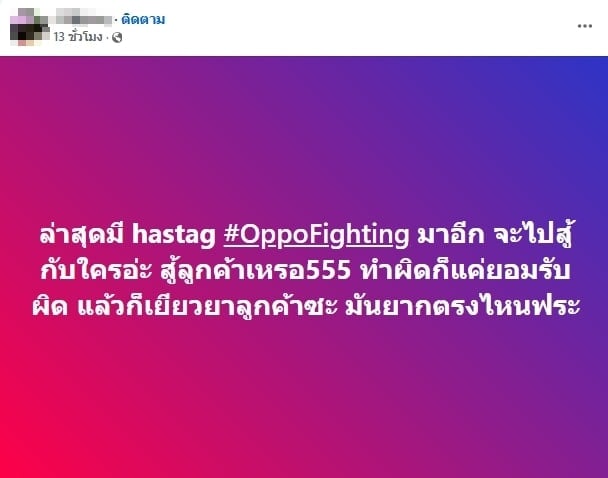 พนักงานกระหน่ำโพสต์ #OPPOfighting ปกป้องแบรนด์ คนแห่ถาม สู้กับใคร ลูกค้า?