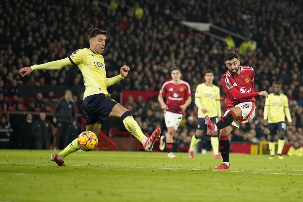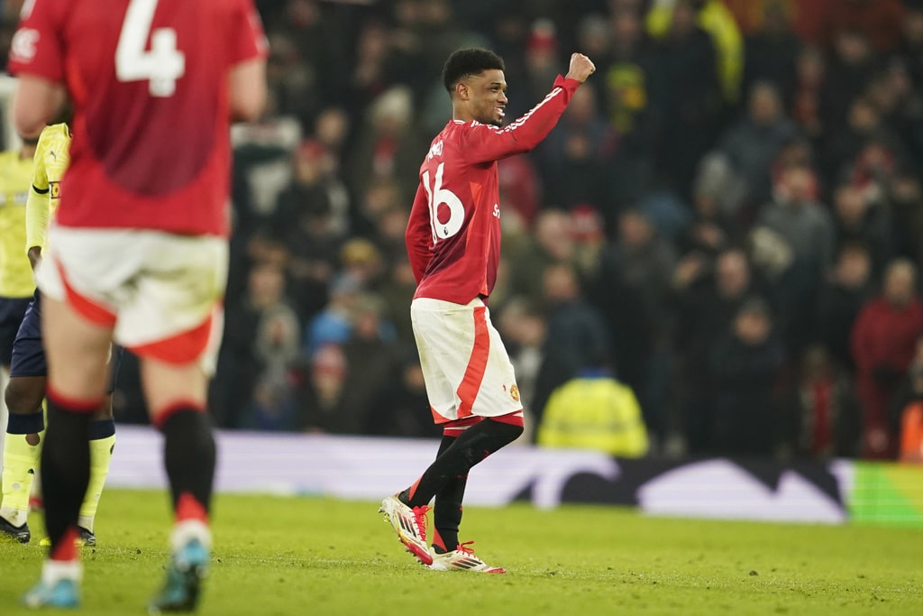 Manchester United’s Amad Diallo celebrates after scoring his side’s third goal during the English Premier League soccer match between Manchester United and Southampton at the Old Trafford stadium in Manchester, England, Thursday, Jan. 16, 2025. (AP Photo/Dave Thompson)Manchester United’s goalkeeper Andre Onana reacts after Amad Diallo scored their side’s second goal during the English Premier League soccer match between Manchester United and Southampton at the Old Trafford stadium in Manchester, England, Thursday, Jan. 16, 2025. (AP Photo/Dave Thompson)Manchester United’s Leny Yoro, left, and Southampton’s Kamaldeen Sulemana challenge for the ball during the English Premier League soccer match between Manchester United and Southampton at the Old Trafford stadium in Manchester, England, Thursday, Jan. 16, 2025. (AP Photo/Dave Thompson)Manchester United’s Joshua Zirkzee, right, and Southampton’s Jan Bednarek challenge for the ball during the English Premier League soccer match between Manchester United and Southampton at the Old Trafford stadium in Manchester, England, Thursday, Jan. 16, 2025. (AP Photo/Dave Thompson)Manchester United’s Matthijs de Ligt, top, clears the ball during the English Premier League soccer match between Manchester United and Southampton at the Old Trafford stadium in Manchester, England, Thursday, Jan. 16, 2025. (AP Photo/Dave Thompson)Manchester United’s Bruno Fernandes, left, gestures to referees during the English Premier League soccer match between Manchester United and Southampton at the Old Trafford stadium in Manchester, England, Thursday, Jan. 16, 2025. (AP Photo/Dave Thompson)Manchester United’s Amad Diallo, centre, holds the ball after Manuel Ugarte, second from right, scored the opening own goal during the English Premier League soccer match between Manchester United and Southampton at the Old Trafford stadium in Manchester, England, Thursday, Jan. 16, 2025. (AP Photo/Dave Thompson)Manchester United’s Bruno Fernandes, right, shoots the ball as Southampton’s Jan Bednarek tires to block during the English Premier League soccer match between Manchester United and Southampton at the Old Trafford stadium in Manchester, England, Thursday, Jan. 16, 2025. (AP Photo/Dave Thompson)