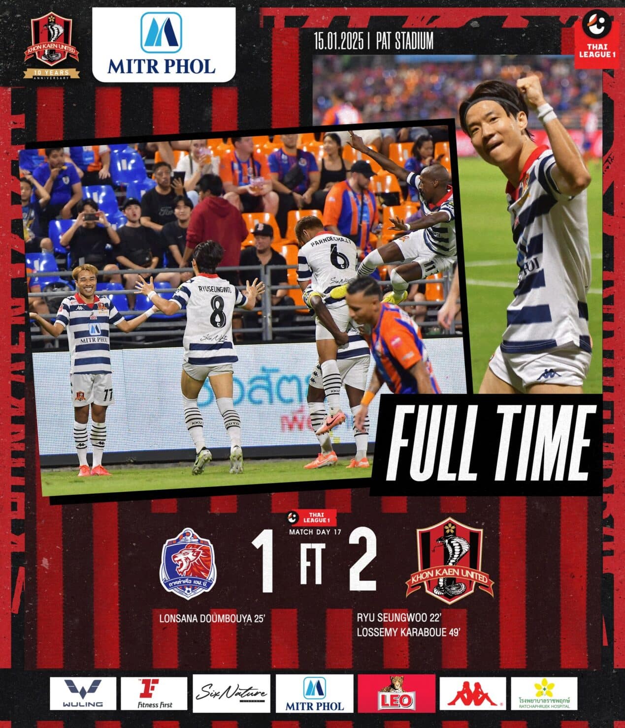 ผลฟุตบอล รีโว่ ไทยลีก ฤดูกาล 2024/25 การท่าเรือ 1-2 ขอนแก่น ยูไนเต็ด :