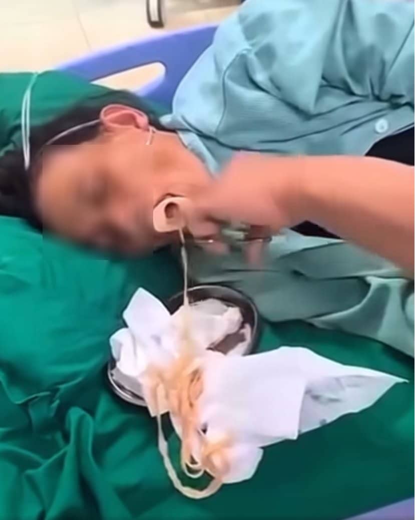 ทำเอาขนลุกกันไปทั้งโซเชียล เมื่อเพจเฟซบุ๊ก อีซ้อขยี้ข่าว : อีซ้อ ออกมาโพสต์คลิปหญิงชราคนหนึ่งถูกวางยาสลบและมีอุปกรณ์ถ่างปากเอาไว้ โดยมีหมอกำลังใช้กรรไกรคีบ พยาธิตัวตืด ที่มีความยาวหลายเมตรมาก ๆ ออกจากปากคนไข้ วางกองอยู่บนถาดเครื่องมือแพทย์