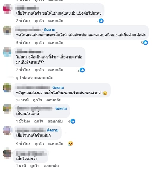 ด้านแฟนคลับต่างก็เข้ามาส่งกำลังใจในไลฟ์แม่นกน้อยกันเป็นจำนวนมาก นอกจากนั้นก็ยังมีคอมเมนต์ใต้โพสต์อีกมากมายที่ร่วมแสดงความเสียใจต่อการจากไปอย่างไม่มีวันหวนกลับ ปิดตำนานนางร้าย 40 ปีบนเวทีเสียงอิสาน แม่เย็น จั๊กจั่น ดาวไพร