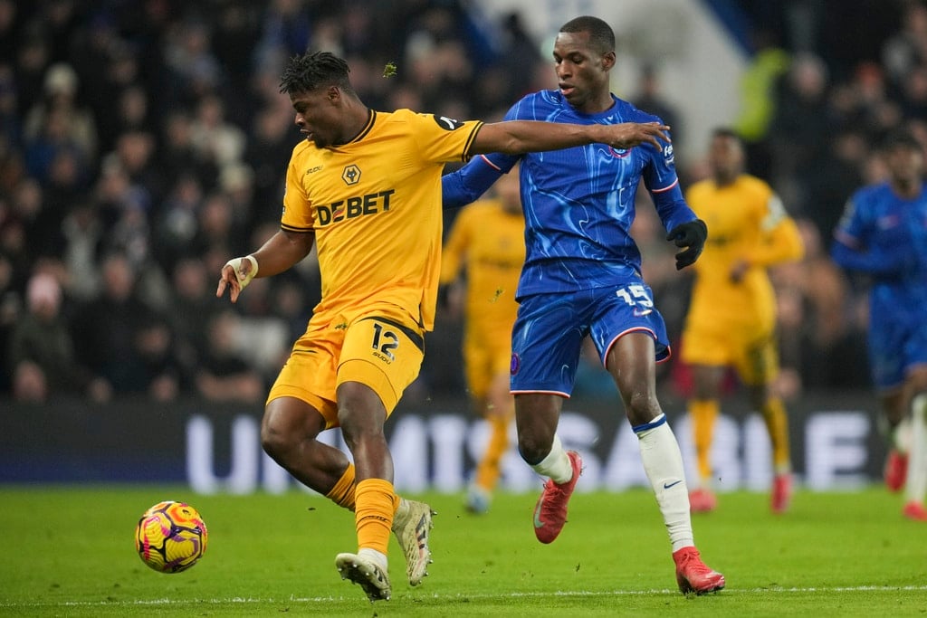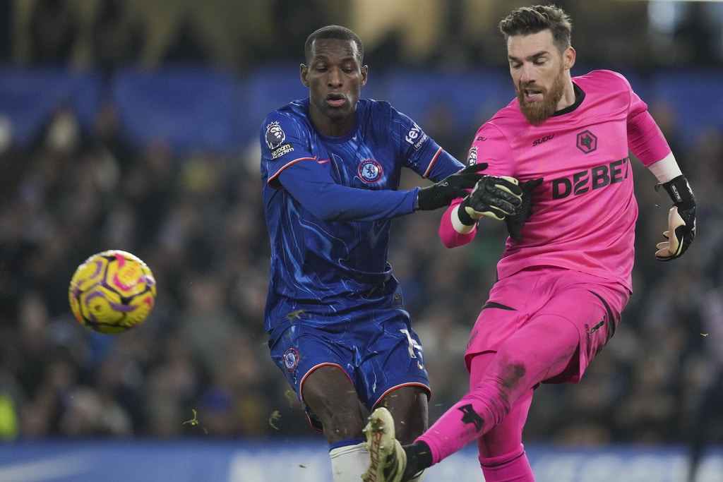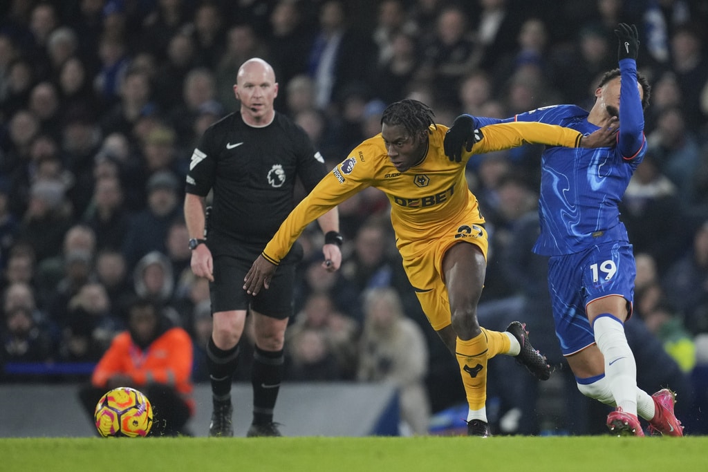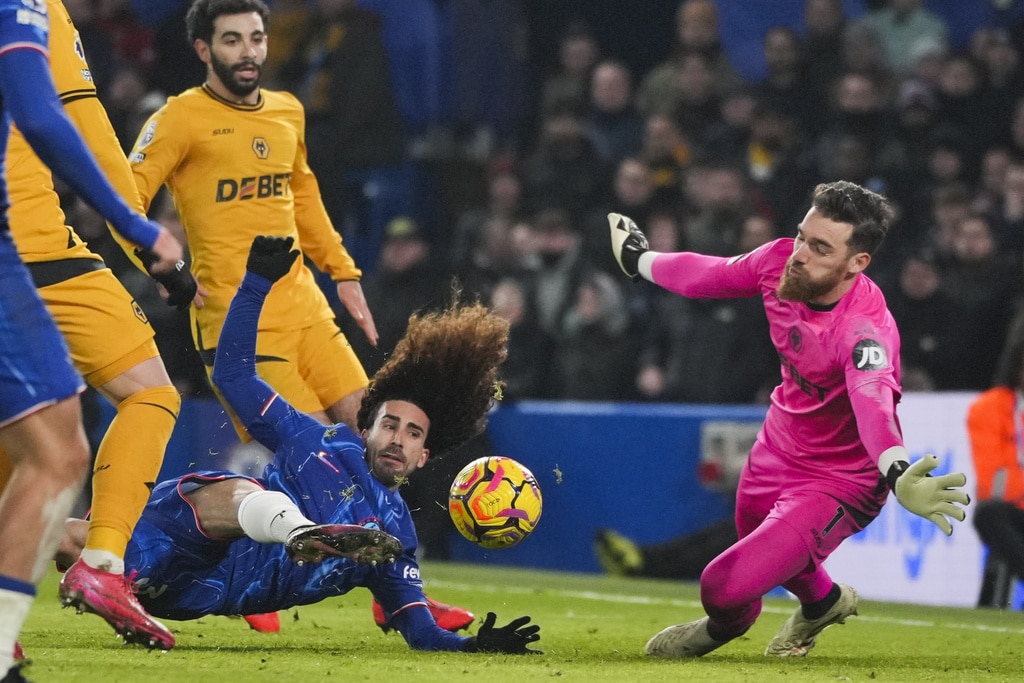 Wolverhampton Wanderers’ Pablo Sarabia, left, duels for the ball with Chelsea’s Pedro Neto during the English Premier League soccer match between Chelsea and Wolverhampton at Stamford Bridge stadium in London, Monday, Jan. 20, 2025. (AP Photo/Kin Cheung)Chelsea’s Noni Madueke, left, duels for the ball with Wolverhampton Wanderers’ Joao Gomes during the English Premier League soccer match between Chelsea and Wolverhampton at Stamford Bridge stadium in London, Monday, Jan. 20, 2025. (AP Photo/Kin Cheung)Chelsea’s Marc Cucurella, center, celebrates with teammates after scoring his side’s second goal during the English Premier League soccer match between Chelsea and Wolverhampton at Stamford Bridge stadium in London, Monday, Jan. 20, 2025. (AP Photo/Kin Cheung)Chelsea’s Marc Cucurella, left, scores his side’s second goal during the English Premier League soccer match between Chelsea and Wolverhampton at Stamford Bridge stadium in London, Monday, Jan. 20, 2025. (AP Photo/Kin Cheung)Wolverhampton Wanderers’ Emmanuel Agbadou, left, duels for the ball with Chelsea’s Nicolas Jackson during the English Premier League soccer match between Chelsea and Wolverhampton at Stamford Bridge stadium in London, Monday, Jan. 20, 2025. (AP Photo/Kin Cheung)Chelsea’s Trevoh Chalobah, left, duels for the ball with Wolverhampton Wanderers’ Pablo Sarabia during the English Premier League soccer match between Chelsea and Wolverhampton at Stamford Bridge stadium in London, Monday, Jan. 20, 2025. (AP Photo/Kin Cheung)Wolverhampton Wanderers’ Jeanricner Bellegarde, center, duels for the ball with Chelsea’s Jadon Sancho during the English Premier League soccer match between Chelsea and Wolverhampton at Stamford Bridge stadium in London, Monday, Jan. 20, 2025. (AP Photo/Kin Cheung)Wolverhampton Wanderers’ goalkeeper Jose Sa, right, makes a save in front of Chelsea’s Nicolas Jackson during the English Premier League soccer match between Chelsea and Wolverhampton at Stamford Bridge stadium in London, Monday, Jan. 20, 2025. (AP Photo/Kin Cheung)