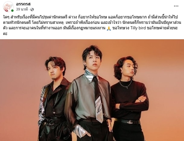 เพจดังขอโทษ 3 หนุ่มวง Tilly bird หลังสรุปดราม่า แสตมป์ อภิวัชร์ – ซาว เอ็นจีเนียร์ พลาด ทำชาวเน็ตเข้าใจผิด ขนทัวร์ไปลงวิจารณ์วงดังอย่างหนัก