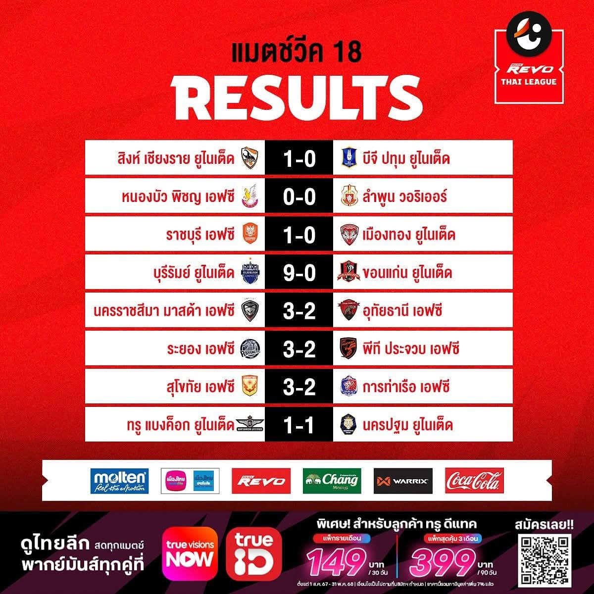 สรุปผลการแข่งขัน รีโว่ ไทยลีก 2024/25 สัปดาห์ที่ 18 ของฤดูกาล