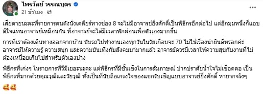 แพรรี่ ไพรวัลย์ เคลื่อนไหว หลัง อ.ยิ่งศักดิ์ ประกาศยุติบทบาทรายการ คนดังนั่งเคลียร์ ลั่น พิธีกรแบบอาจารย์หาได้ยาก ตอนนี้ถึงเวลาพักผ่อนแล้ว