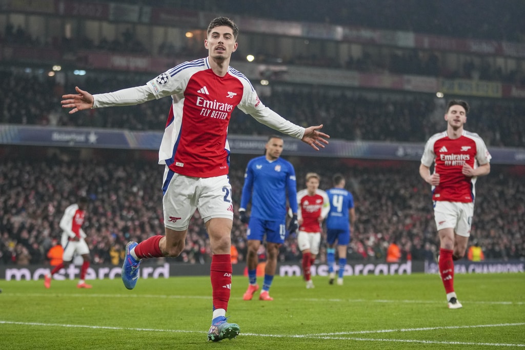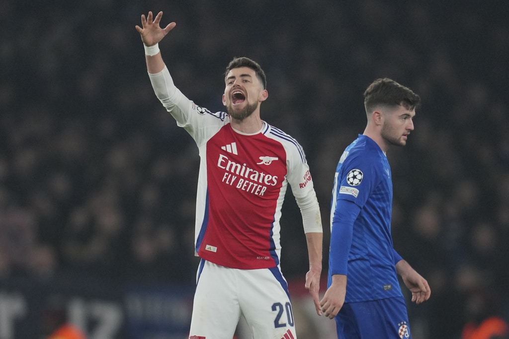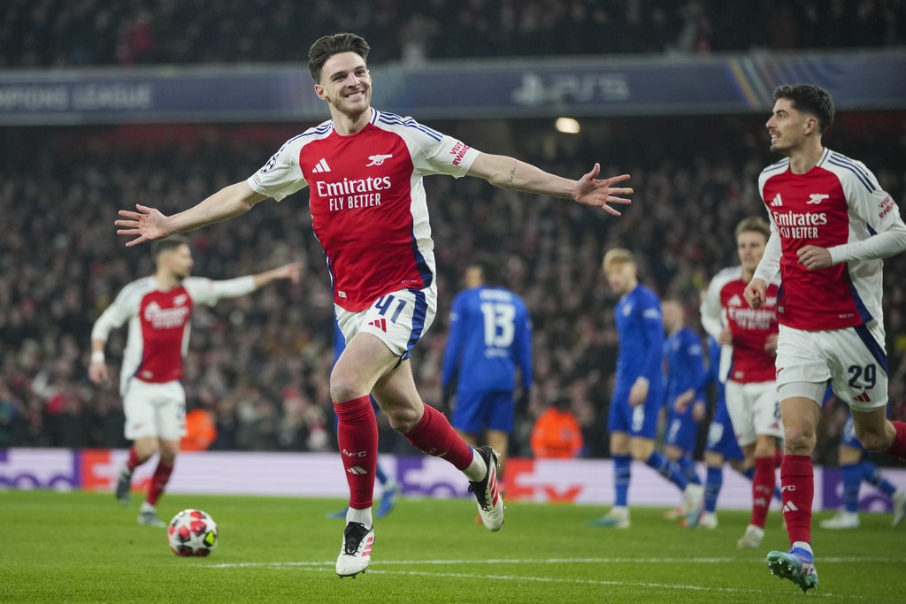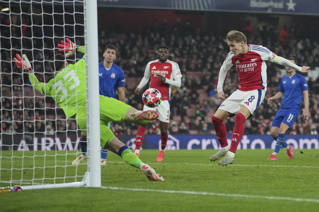 Arsenal’s Declan Rice, centre, celebrates after scoring his side’s opening goal during the Champions League soccer match between Arsenal and Dinamo Zagreb at the Emirates stadium in London, Wednesday, Jan. 22, 2025. (AP Photo/Kin Cheung)Arsenal’s Martin Odegaard scores his side’s third goal during the Champions League soccer match between Arsenal and Dinamo Zagreb at the Emirates stadium in London, Wednesday, Jan. 22, 2025. (AP Photo/Kin Cheung)Arsenal’s Martin Odegaard scores his side’s third goal during the Champions League soccer match between Arsenal and Dinamo Zagreb at the Emirates stadium in London, Wednesday, Jan. 22, 2025. (AP Photo/Kin Cheung)Arsenal’s Kieran Tierney holds the ball during the Champions League soccer match between Arsenal and Dinamo Zagreb at the Emirates stadium in London, Wednesday, Jan. 22, 2025. (AP Photo/Kin Cheung)Arsenal’s Jorginho yells during the Champions League soccer match between Arsenal and Dinamo Zagreb at the Emirates stadium in London, Wednesday, Jan. 22, 2025. (AP Photo/Kin Cheung)Arsenal’s Kai Havertz celebrates after scoring his side’s second goal during the Champions League soccer match between Arsenal and Dinamo Zagreb at the Emirates stadium in London, Wednesday, Jan. 22, 2025. (AP Photo/Kin Cheung)Arsenal’s Gabriel reacts after a missed chance during the Champions League soccer match between Arsenal and Dinamo Zagreb at the Emirates stadium in London, Wednesday, Jan. 22, 2025. (AP Photo/Kin Cheung)
