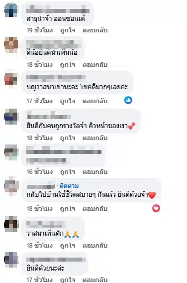ในขณะที่ชาวเน็ตต่างก็เข้ามาร่วมแสดงความยินดีกันอย่างมากมาย ทั้งยังอยากให้ถึงคิวของตัวเองสักทีที่จะดวงเฮงถูกรางวัลเงินล้านแบบนี้บ้าง