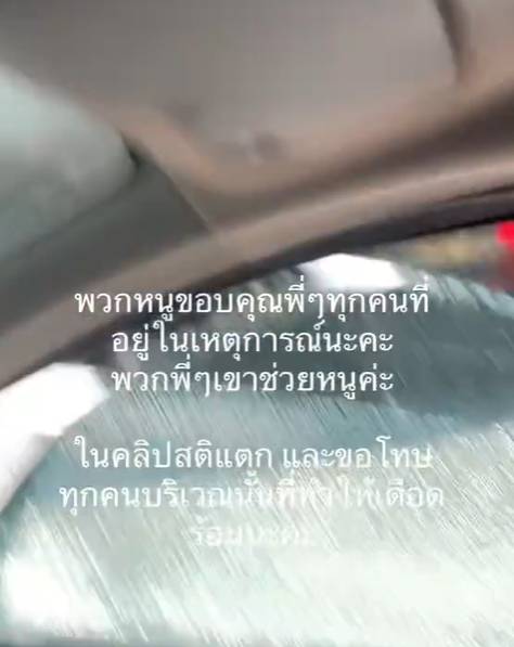 ปล. เพิ่งฟังเที่ยงวันพี่หน่วง (หนุ่ม กรรชัย) บอกให้ใช้รถใช้ถนนแบบใจเย็นๆ ไม่คิดว่าจะเกิดขึ้นกับตัวเอง เป็นประสบการณ์ที่ไม่อยากเจอเลยค่ะ เราขอโทษทุกคนตรงนั้นด้วยนะคะที่ทำให้เดือดร้อนเป็นวงกว้าง เผื่อเจอคอมเม้นต์ว่าทำไมไม่ลงไปคุย ตาขวาง เดินมาหาเรื่องขนาดนี้ หนูไม่กล้าลงไปค่ะ”