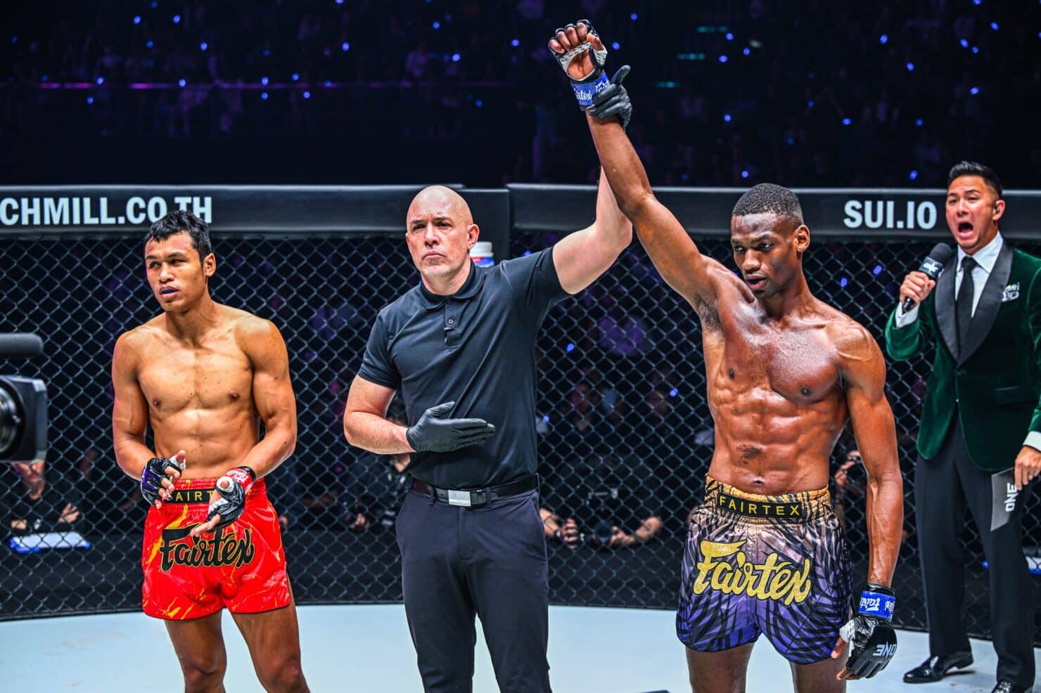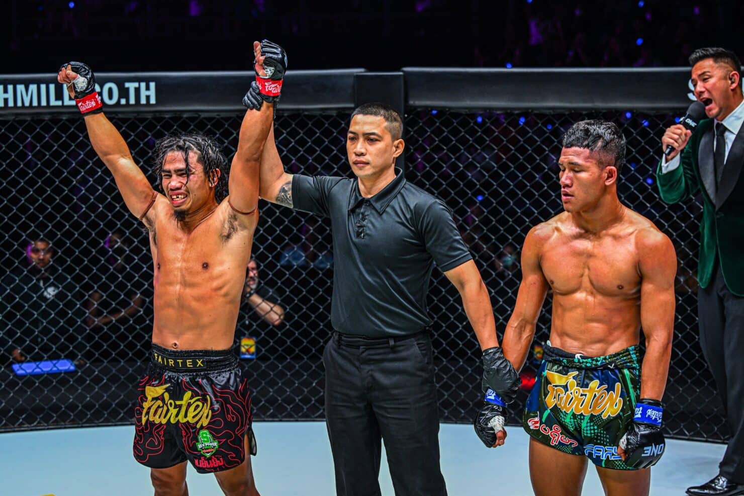 คู่เอกของรายการ ONE 170 “ตะวันฉาย พีเค.แสนชัย” แชมป์โลก ONE มวยไทย รุ่นเฟเธอร์เวต (145-155 ป.) ขึ้นทำหน้าที่ป้องกันบัลลังก์เป็นครั้งที่ 4 จากคู่ปรับเก่า “ซุปเปอร์บอน ซุปเปอร์บอนเทรนนิงแคมป์” แชมป์โลก ONE คิกบ็อกซิ่ง โดยหลังจากแลกแข้งทักทายกันหนัก ๆ ตั้งแต่ยกแรก เริ่มยกสองมาเท่าไหร่ “ตะวันฉาย” เป็นฝ่ายเดินบุกจนได้จังหวะซัดหมัดส่ง “ซุปเปอร์บอน” ลงไปนอนได้นับแรก ก่อนจะเร่งระดมยิงอาวุธใส่ไม่ยั้งจนได้อีก 2 นับ ชนะทีเคโอ รั้งเข็มขัดเหนียวแน่น พร้อมรับโบนัส 50,000 ดอลลาห์สหรัฐ (กว่า 1.7 ล้านบาท) กลับบ้าน