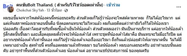 ล่าสุดทางด้านไรเดอร์หนุ่มผู้แสนดีก็ได้ออกมาเคลื่อนไหวแล้ว หลังจากทราบข่าวว่าลูกค้าสาวเมื่อคืนนี้โพสต์ตามหาตัว โดยเขาได้โพสต์ข้อความลงในกลุ่มเช่นกัน ระบุว่า