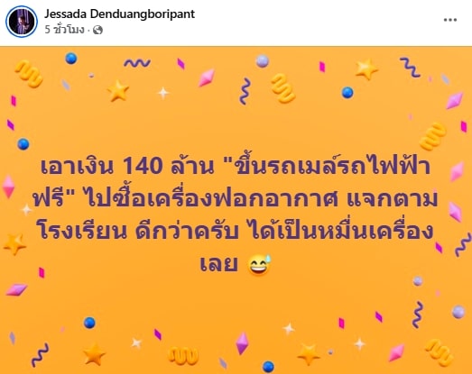 อ.เจษฎา เด่นดวงบริพันธ์ แนะรัฐบาลหาทางแก้ ฝุ่น PM 2.5 ใหม่ จ่าย 140 ล้านซื้อเครื่องฟอกอากาศแจกตามโรงเรียน แทนการขึ้นรถไฟฟ้า-รถเมล์ฟรี
