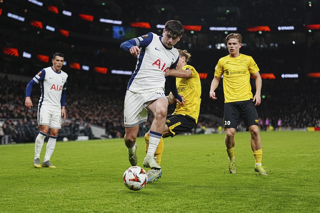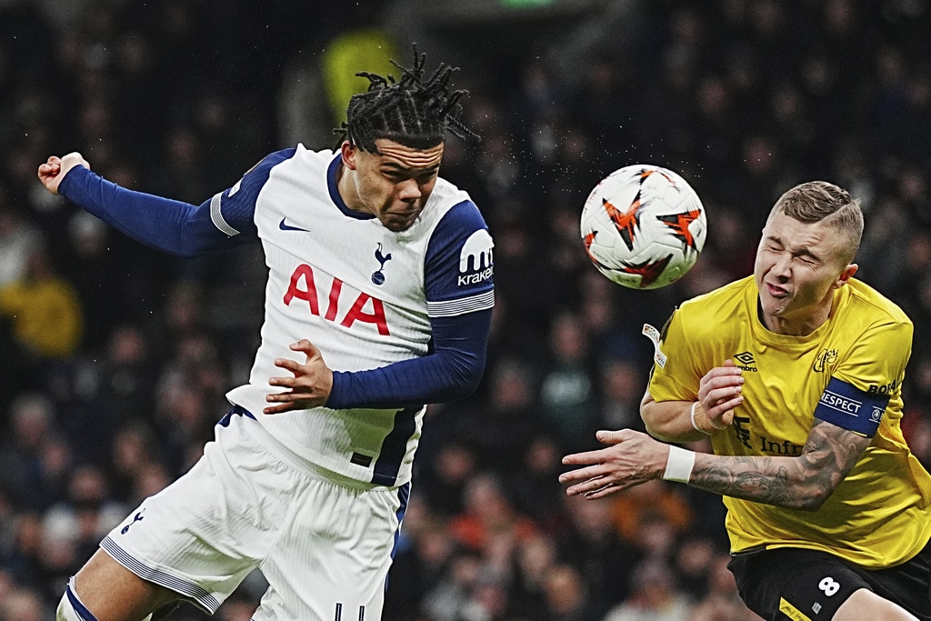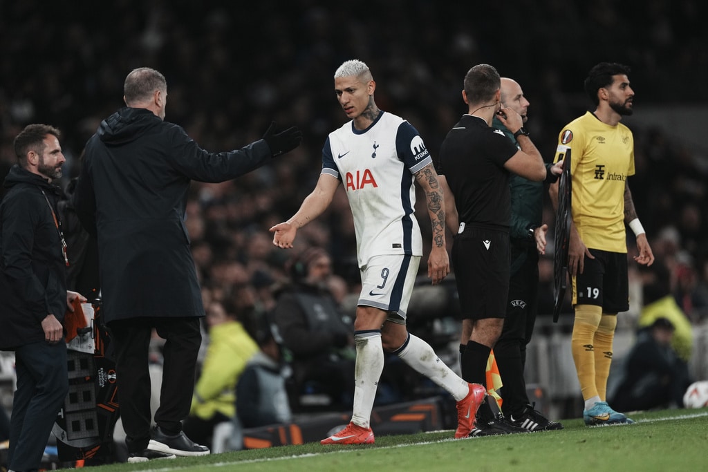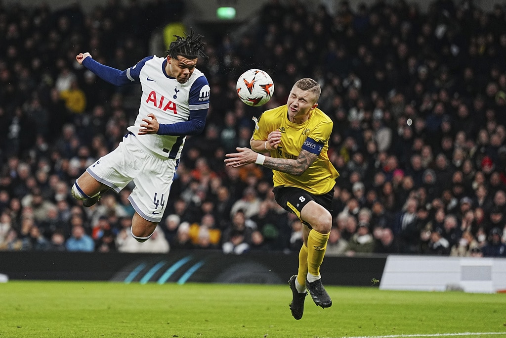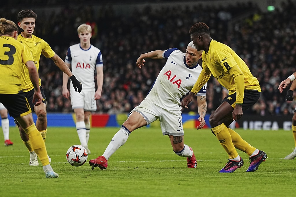 Tottenham’s Richarlison, centre, and Tottenham’s head coach Ange Postecoglou greet each other during a substitution at the Europa League opening phase soccer match between Tottenham Hotspur and Elfsborg at the Tottenham Hotspur stadium in London, Thursday, Jan. 30, 2025. (AP Photo/Dave Shopland)Tottenham’s Mikey Moore, centre left, and Elfsborg’s Niklas Hult challenge for the ball during the Europa League opening phase soccer match between Tottenham Hotspur and Elfsborg at the Tottenham Hotspur stadium in London, Thursday, Jan. 30, 2025. (AP Photo/Dave Shopland)Tottenham’s Oyindamola Ajayi celebrates after scoring his side’s second goal during the Europa League opening phase soccer match between Tottenham Hotspur and Elfsborg at the Tottenham Hotspur stadium in London, Thursday, Jan. 30, 2025. (AP Photo/Dave Shopland)Tottenham’s Dane Scarlett, left, scores the opening goal during the Europa League opening phase soccer match between Tottenham Hotspur and Elfsborg at the Tottenham Hotspur stadium in London, Thursday, Jan. 30, 2025. (AP Photo/Dave Shopland)Tottenham’s Dane Scarlett, left, scores the opening goal during the Europa League opening phase soccer match between Tottenham Hotspur and Elfsborg at the Tottenham Hotspur stadium in London, Thursday, Jan. 30, 2025. (AP Photo/Dave Shopland)Tottenham’s Richarlison, centre, challenges for the ball during the Europa League opening phase soccer match between Tottenham Hotspur and Elfsborg at the Tottenham Hotspur stadium in London, Thursday, Jan. 30, 2025. (AP Photo/Dave Shopland)