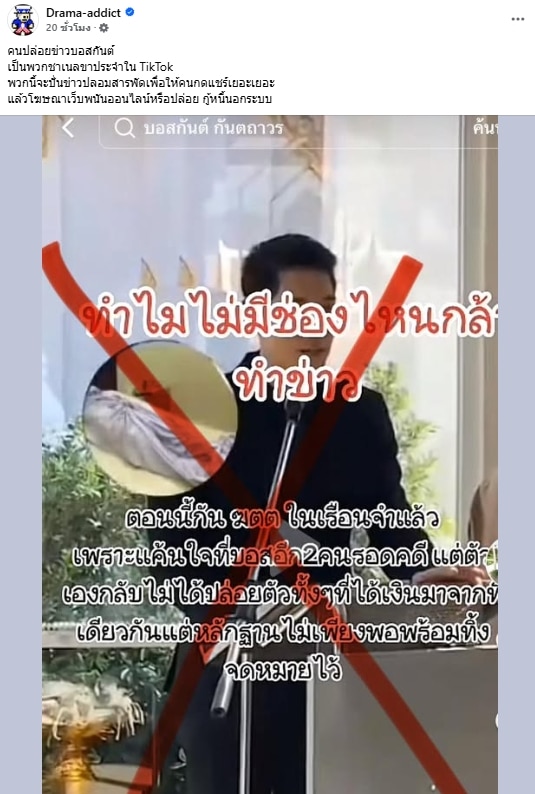 เพจดัง ขุดต้นตอคนปล่อยข่าวลือ บอสกันต์ กันตถาวร จบชีวิตตัวเองในเรือนจำ รู้แล้วมาจากไหน? ทำเป็นแก๊ง คนหลงเชื่อเยอะมาก