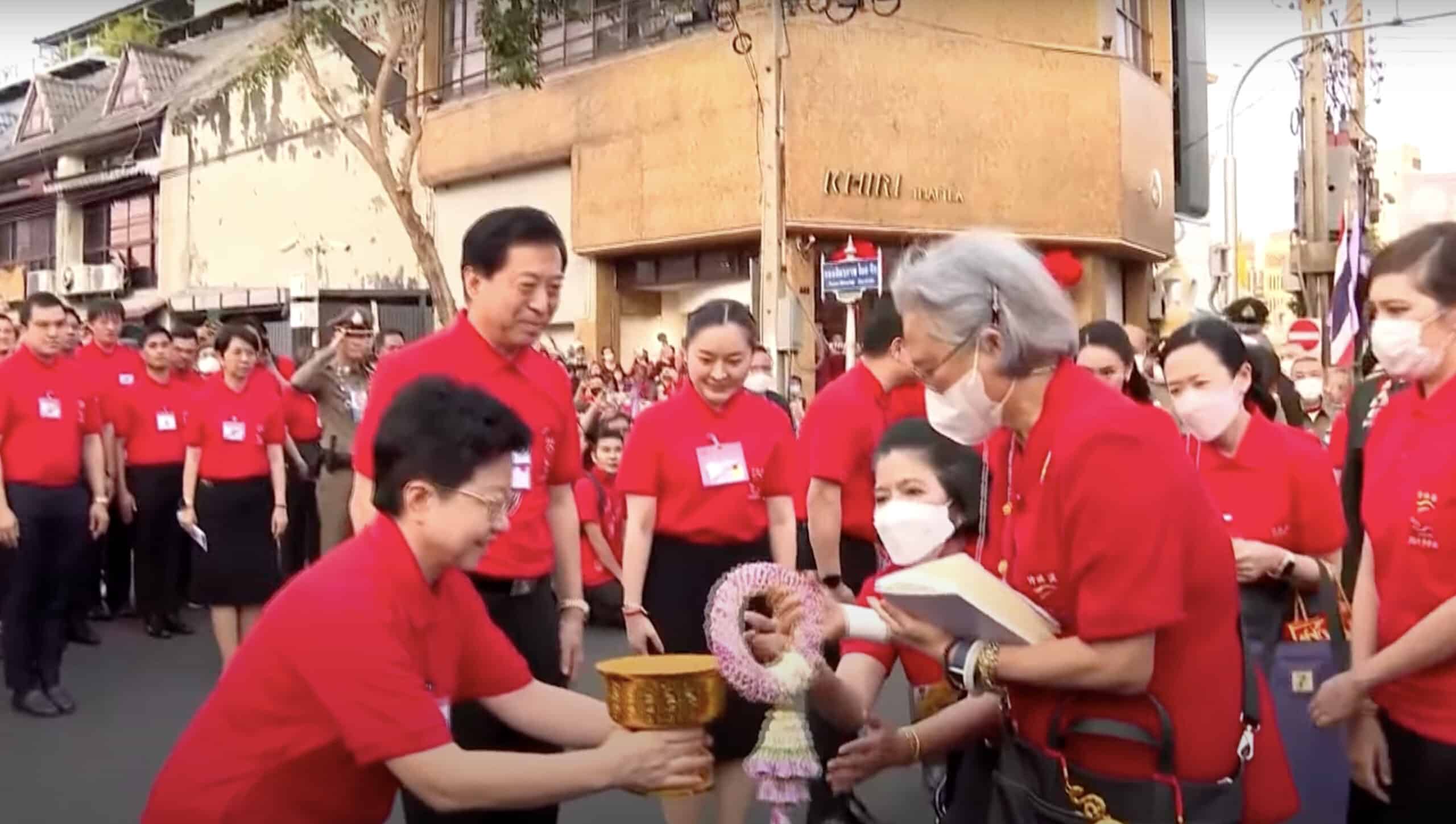 ตลอดเส้นทางเสด็จพระราชดำเนิน มีประชาชนชาวไทยเชื้อสายจีนจำนวนมาก สวมใส่เสื้อสีแดง มารอเฝ้าฯ รับเสด็จอย่างเนืองแน่น