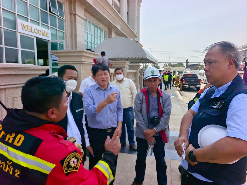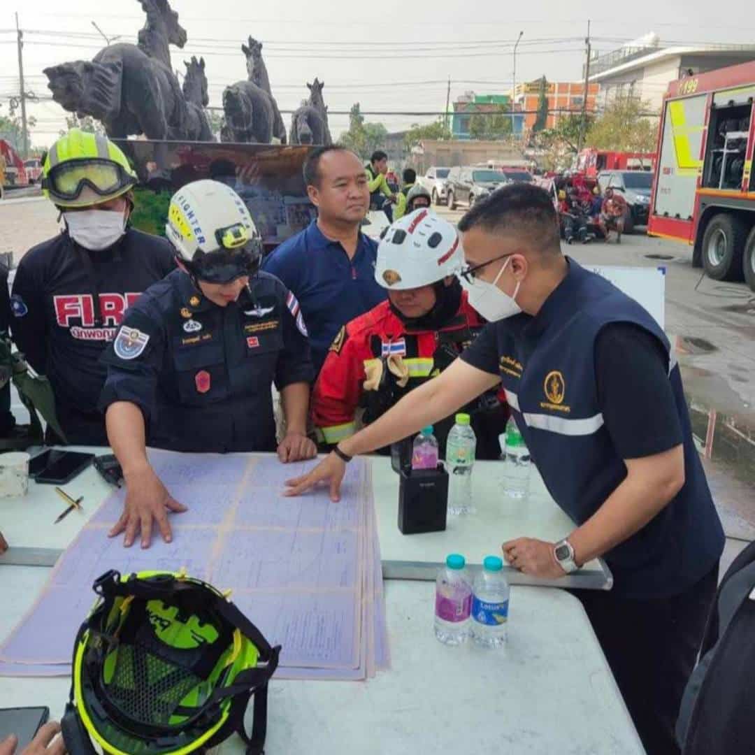 นายธราพงษ์ เพ็ชร์คง ผู้อำนวยการเขตลาดกระบัง )ผู้บัญชาการเหตุการณ์เขต) จัดตั้งศูนย์อำนวยการและช่วยเหลือบริเวณด้านหน้าอาคาร และสั่งการเจ้าหน้าที่ปิดกั้นแนวตัวอาคารห่าง 10 เมตร จัดเจ้าหน้าที่อำนวยความสะดวกและช่วยเหลือร่วมกับหน่วยงานที่เกี่ยวข้อง