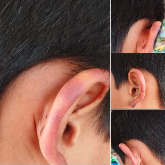 นอกจากนั้นแม่เด็กป.3 ก็ได้โพสต์ภาพใบหูของลูกชายหลังจากผ่านมา 3 วัน ใบหูของน้องยังคงมีอาการบวม ช้ำจนเป็นสีม่วง และมีรอยแผลอยู่