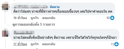 เมื่อกระซิบบอกชื่อ บุ๋ม ปนัดดา ถึงกับอ้าปากค้าง ทั้งยังบอกอีกว่า บ้านเธอคนนี้รวยมาก ๆ งานนี้เหล่าเพจดังทั้งหลายก็ไม่รอช้ารีบออกมาโพสต์เปิดทางคำใบ้ให้เหล่าชาวเน็ตนักเผือกช่วยกันขุดค้นความจริง ซึ่งจากที่ได้เห็นคอมเมนต์จากทั้ง 3 เพจก็พอจะเดาออกคร่าว ๆ แล้วว่า อดีตดาราสาว ติดหนี้ 62 ล้าน คนนี้คือใคร แต่ก็คงต้องรอจับตาดูความคืบหน้าต่อไปว่าเจ้าตัวจะออกมาแก้ข่าวหรือไม่ หรือว่าทางเจ้าหนี้ที่เป็นนักธุรกิจสาวจะมีโอกาสได้ออกมาชี้แจงหรือไม่