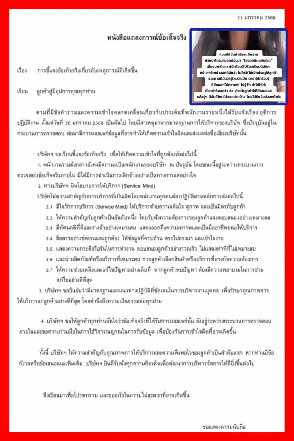 จากกรณีที่มีมีพนักงานสาวรายหนึ่งออกมาโพสต์ระบายลงโซเชียลว่า ตนถูกหัวหน้าไล่ออกจากงานโดยไม่แจ้งล่วงหน้า หลังจากมีดาราดังร้องเรียนถึงเรื่องการบริการที่สาวคนดังกล่าวไม่เปิดประตูให้ และไม่ยกมือไหว้ดาราดัง ขณะที่ทางบริษัทก็ได้ออกมาชี้แจงตามหลังว่าสาวคนดังกล่าวนั้นยังคงเป็นพนักงานของบริษัทอยู่ และกรณีที่เกิดขึ้นยังอยู่ในระหว่างกระบวนการตรวจสอบข้อเท็จจริงภายใน