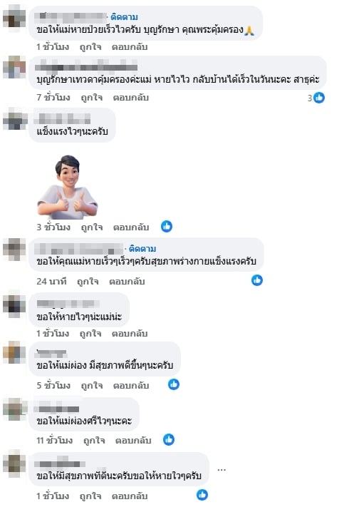 ท่ามกลางแฟนเพลงทั้งรุ่นเก่ารุ่นใหม่ที่ได้ทราบข่าวอาการป่วยของ แม่ผ่องศรี ต่างก็เข้ามาร่วมส่งกำลังใจ รวมถึงอวยพรให้เทวดาอารักษ์ และพระพุทธเจ้าคุ้มครองให้ราชินีเพลงลูกทุ่ง ผ่องศรี วรนุช วัย 85 ปีหายจากอาการป่วย กลับมามีสุขภาพแข็งแรงในเร็ววัน