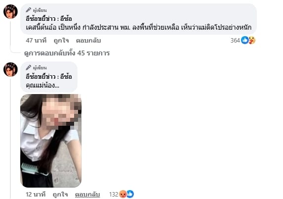 ด้านเพจ อีซ้อขยี้ข่าว : อีซ้อ ได้นำคลิปเหตุการณ์มาโพสต์ลงในเพจเช่นกัน ทั้งยังแจ้งเพิ่มเติมอีกว่า แม่ของเด็กคนนี้ อายุ 21 ปีและติดกินโคดิลผสมน้ำอัดลมด้วย