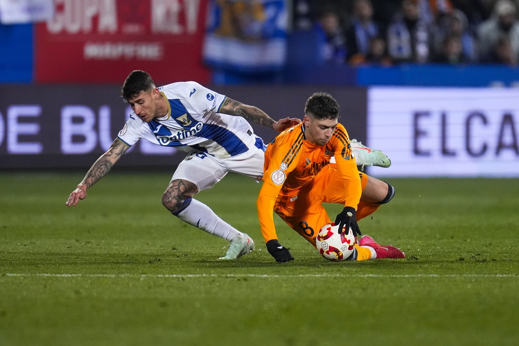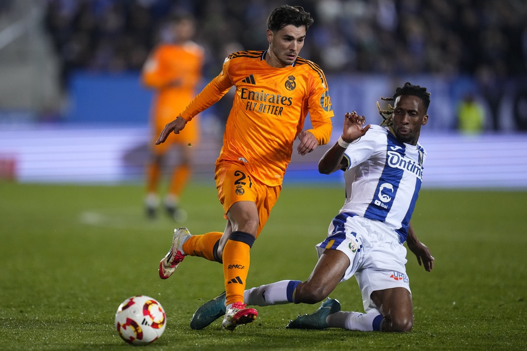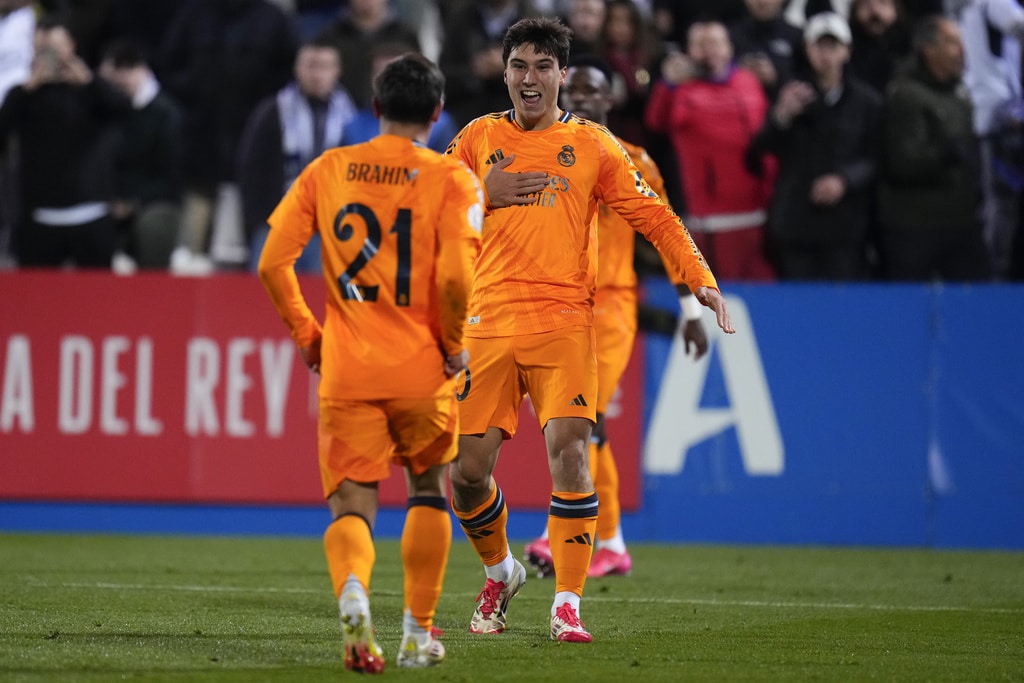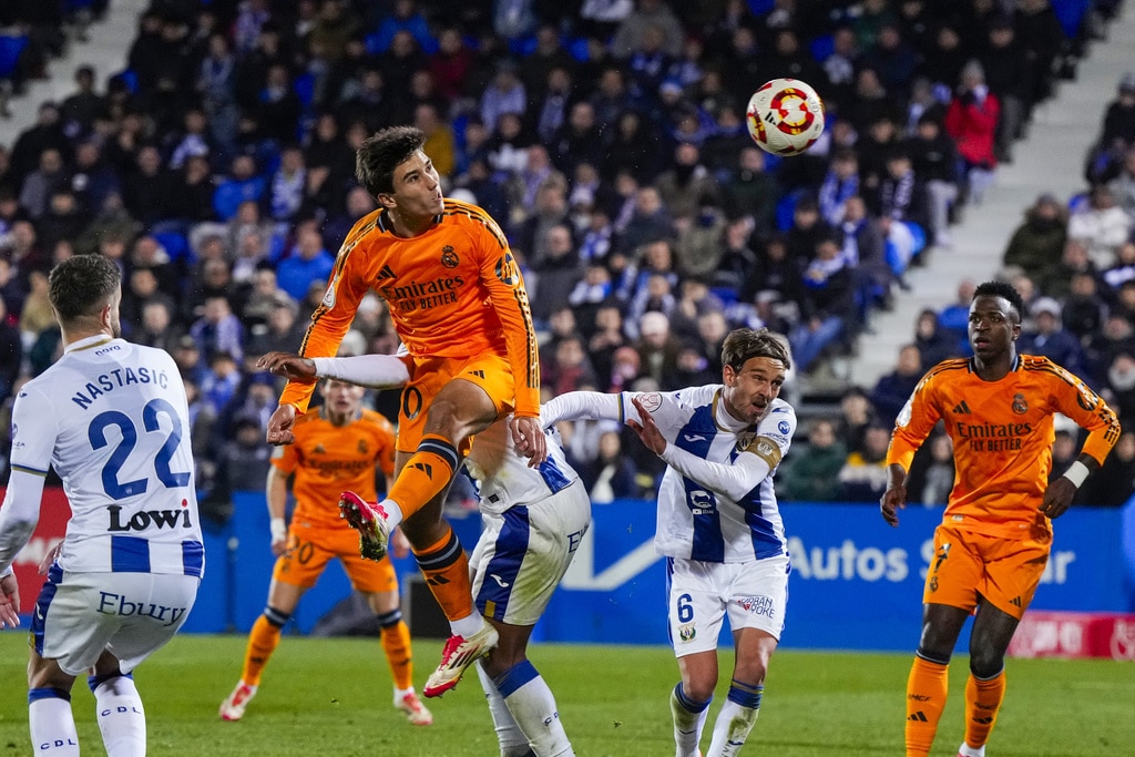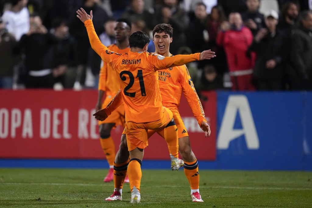 Real Madrid’s Luka Modric, right, celebrates after scoring the opening goal during a Spanish Copa del Rey, or King’s Cup, quarter-final soccer match between CD Leganes and Real Madrid at Butarque stadium, in Leganes, outside Madrid, Wednesday, Feb. 5, 2025. (AP Photo/Manu Fernandez)Real Madrid’s Gonzalo Garcia, right, celebrates with teammate Brahim Diaz after scoring their side’s third goal during a Spanish Copa del Rey, or King’s Cup, quarter-final soccer match between CD Leganes and Real Madrid at Butarque stadium, in Leganes, outside Madrid, Wednesday, Feb. 5, 2025. (AP Photo/Manu Fernandez)Real Madrid’s Federico Valverde, right, battles for the ball with Leganes’ Dani Raba during a Spanish Copa del Rey, or King’s Cup, quarter-final soccer match between CD Leganes and Real Madrid at Butarque stadium, in Leganes, outside Madrid, Wednesday, Feb. 5, 2025. (AP Photo/Manu Fernandez)Real Madrid’s Gonzalo Garcia, center, heads the ball to score his side’s third goal past Leganes’ goalkeeper Juan Soriano, left, during a Spanish Copa del Rey, or King’s Cup, quarter-final soccer match between CD Leganes and Real Madrid at Butarque stadium, in Leganes, outside Madrid, Wednesday, Feb. 5, 2025. (AP Photo/Manu Fernandez)Real Madrid’s Gonzalo Garcia, right, celebrates with teammate Brahim Diaz after scoring their side’s third goal during a Spanish Copa del Rey, or King’s Cup, quarter-final soccer match between CD Leganes and Real Madrid at Butarque stadium, in Leganes, outside Madrid, Wednesday, Feb. 5, 2025. (AP Photo/Manu Fernandez)Real Madrid’s Gonzalo Garcia, top, heads the ball to score his side’s third goal during a Spanish Copa del Rey, or King’s Cup, quarter-final soccer match between CD Leganes and Real Madrid at Butarque stadium, in Leganes, outside Madrid, Wednesday, Feb. 5, 2025. (AP Photo/Manu Fernandez)Real Madrid’s Brahim Diaz, left, vies for the ball with Leganes’ Yvan Neyou during a Spanish Copa del Rey, or King’s Cup, quarter-final soccer match between CD Leganes and Real Madrid at Butarque stadium, in Leganes, outside Madrid, Wednesday, Feb. 5, 2025. (AP Photo/Manu Fernandez)Real Madrid’s Luka Modric, left, celebrates with teammate Rodrygo after scoring the opening goal during a Spanish Copa del Rey, or King’s Cup, quarter-final soccer match between CD Leganes and Real Madrid at Butarque stadium, in Leganes, outside Madrid, Wednesday, Feb. 5, 2025. (AP Photo/Manu Fernandez)