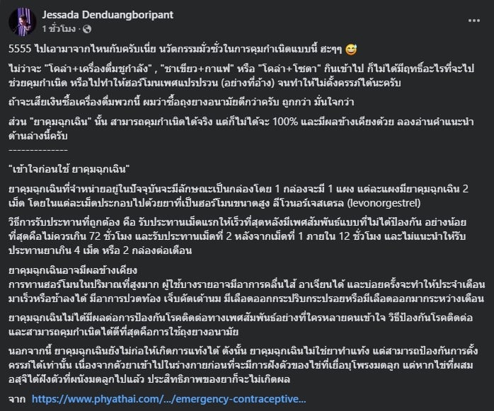อ.เจษฎา โพสต์เตือนวัยรุ่น อย่าหลงเชื่อ 3 สูตรน้ำผสมช่วยคุมกำเนิด ไม่เป็นความจริง แนะเอาเงินไปซื้อถุงยางดีกว่า พร้อมให้ความรู้เรื่อง ยาคุมฉุกเฉิน