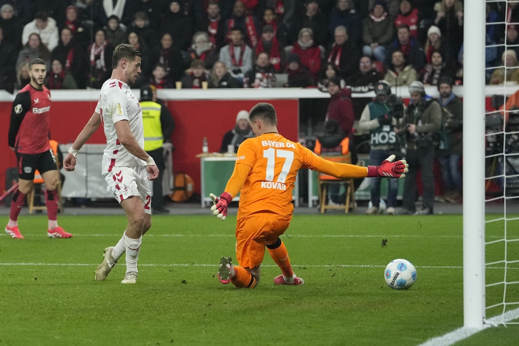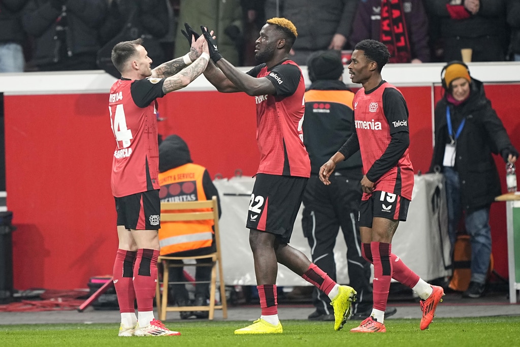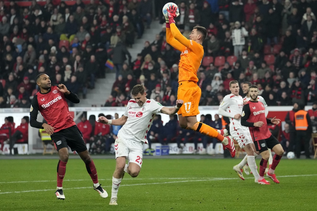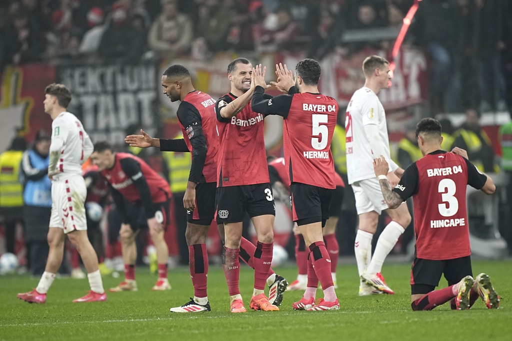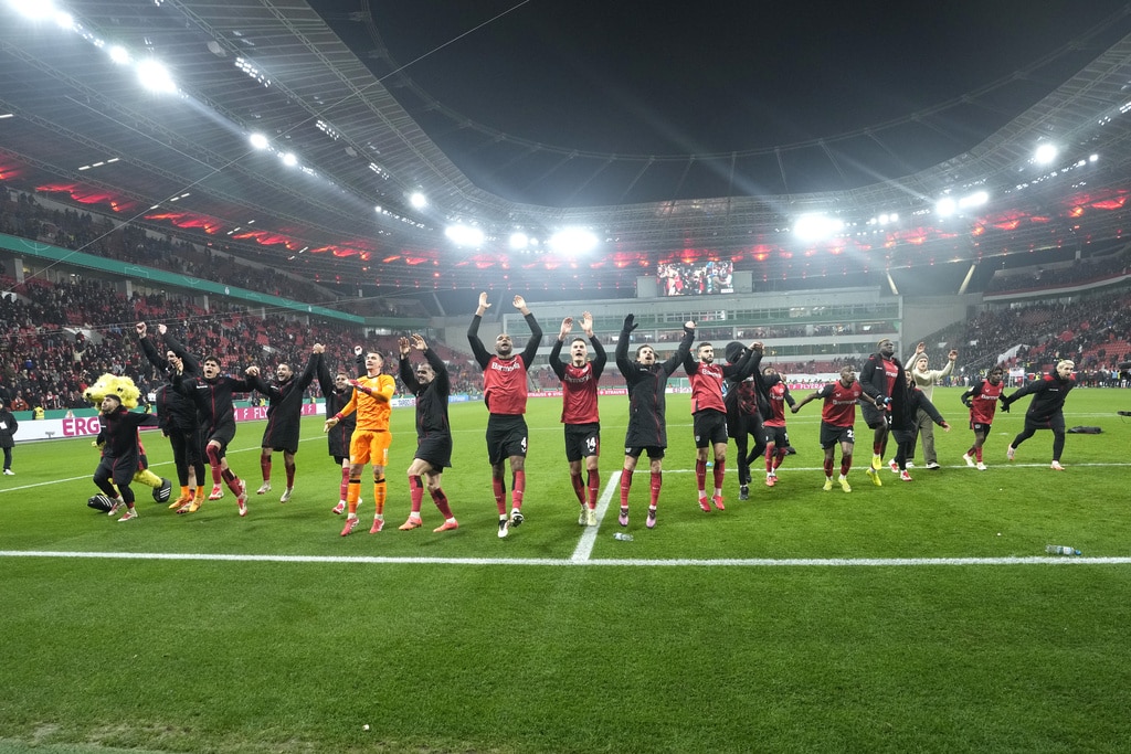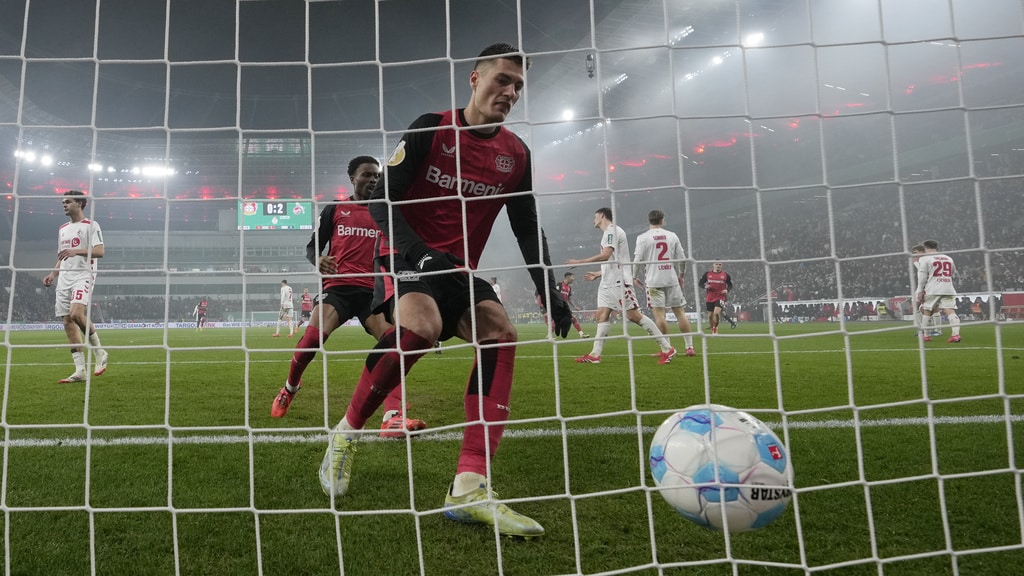 Leverkusen’s Nathan Tella, center, controls the ball next of the Cologne’s goalkeeper Marvin Schwaebe, right, during the German Cup, quarterfinal soccer match between Bayer Leverkusen and FC Cologne at the BayArena in Leverkusen, Germany, Wednesday, Feb. 5, 2025. (AP Photo/Martin Meissner)Leverkusen’s goalkeeper Matej Kovar catches a ball during the German soccer cup quarterfinal match between Bayer Leverkusen and 1.FC Cologne at the BayArena in Leverkusen, Germany, Wednesday, Feb. 5, 2025. (AP Photo/Martin Meissner)Cologne’s Imad Rondic scores a goal that was later disallowed by the video referee during the German soccer cup quarterfinal match between Bayer Leverkusen and 1.FC Cologne at the BayArena in Leverkusen, Germany, Wednesday, Feb. 5, 2025. (AP Photo/Martin Meissner)Leverkusen’s Patrik Schick celebrates after scoring his second goal during the German soccer cup quarterfinal match between Bayer Leverkusen and 1.FC Cologne at the BayArena in Leverkusen, Germany, Wednesday, Feb. 5, 2025. (AP Photo/Martin Meissner)Leverkusen’s scorer Patrik Schick takes the ball out of the goal after scoring during the German soccer cup quarterfinal match between Bayer Leverkusen and 1.FC Cologne at the BayArena in Leverkusen, Germany, Wednesday, Feb. 5, 2025. (AP Photo/Martin Meissner)Leverkusen’s Patrik Schick scores his side’s second goal during the German soccer cup quarterfinal match between Bayer Leverkusen and 1.FC Cologne at the BayArena in Leverkusen, Germany, Wednesday, Feb. 5, 2025. (AP Photo/Martin Meissner)Leverkusen’s players celebrate their win against Cologne after the end of the German Cup, quarterfinal soccer match between Bayer Leverkusen and FC Cologne at the BayArena in Leverkusen, Germany, Wednesday, Feb. 5, 2025. (AP Photo/Martin Meissner)Leverkusen’s players celebrate their win against Cologne after the end of the German Cup, quarterfinal soccer match between Bayer Leverkusen and FC Cologne at the BayArena in Leverkusen, Germany, Wednesday, Feb. 5, 2025. (AP Photo/Martin Meissner)Leverkusen’s Victor Boniface, center, celebrates with his teammates after scoring the third goal against Cologne during the German Cup, quarterfinal soccer match between Bayer Leverkusen and FC Cologne at the BayArena in Leverkusen, Germany, Wednesday, Feb. 5, 2025. (AP Photo/Martin Meissner)