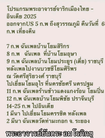 ตารางงานของ อดีตพระยันตระ ในการเดินทางกลับมายังประเทศไทยนั้น แน่นขนัดทุกวันจนถึงวันที่ 2 มีนาคม 2568 ประกอบด้วย