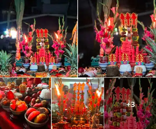 พิธีไหว้ทีก๊องแซ วันเทวสมภพพระหยกจักรพรรดิ์(หยกหองสย่งเต่/ทีก๊อง) ตามรูปแบบและขนบประเพณีฮกเกี้ยน ณ บ้านอาจารย์ตุล ประจำปีนี้ ซึ่งชาวฮกเกี้ยนเห็นว่าเป็นวันสำคัญที่สุดในเทศกาลตรุษจีน (ภาพจากกลางดึกเมื่อคืนวาน)