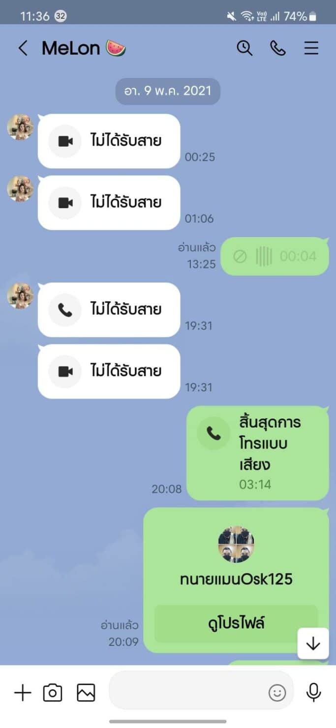 ต่อมาวันที่ 9 พ.ค. ทางแตงโม พยายามวิดีโอคอลหลายครั้ง แต่ไม่ได้รับสาย ซึ่งนายวันได้ส่งข้อความเสียงตอบกลับไปยาว 4 วินาที พร้อมส่งข้อมูลบัญชีของทนายแมนให้ฟัง ก่อนส่งข้อความเสียงยาวอีก 12 วิไป