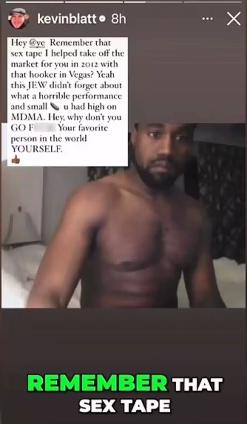 เควิน บลาตต์คุยโวโอ้อวดว่า ตัวเองนี่แหละที่เคย “ยับยั้ง” ไม่ให้คลิปหลุดนี้ถูกขายว่อนเน็ต จนอาจจะหลุดไปถึงมือประชาชนตาดำๆ ได้ นายคนนี้เหมือนจงใจ “ขุดคุ้ย” เรื่องเทปลับขึ้นมาใหม่ ประชดประชันวีรกรรมล่าสุดของคานเย่ ที่เพิ่งขายเสื้อยืดลายสวัสดิกะ แถมยังปากด่ากราดยิวในโซเชียลมีเดียเนืองๆ